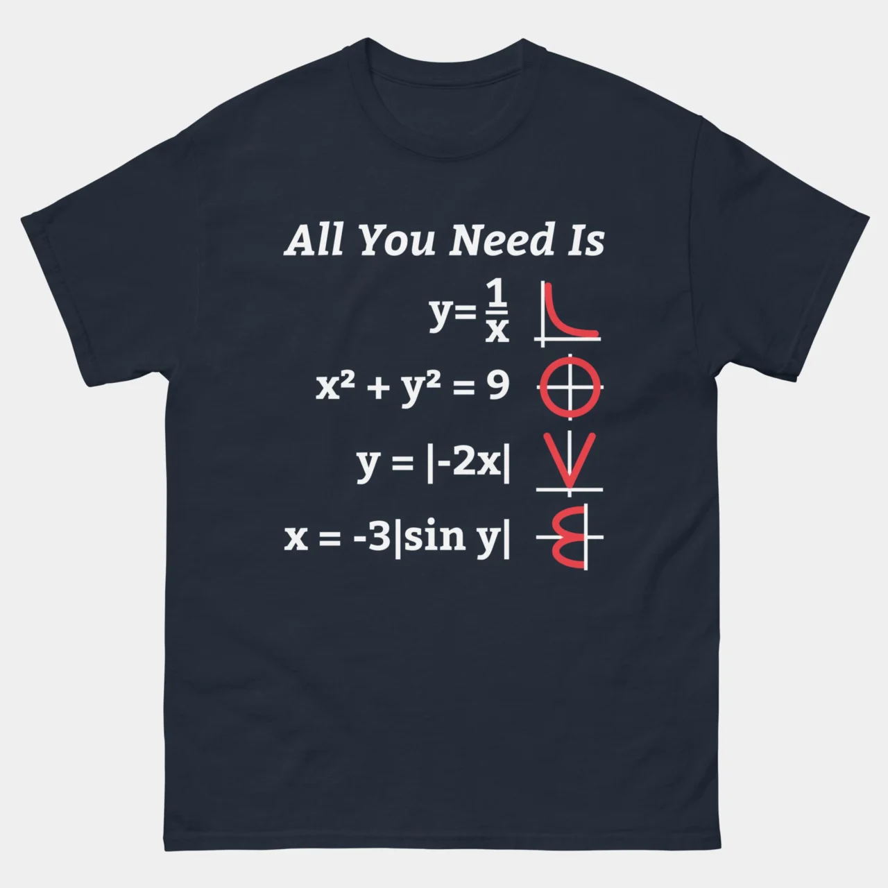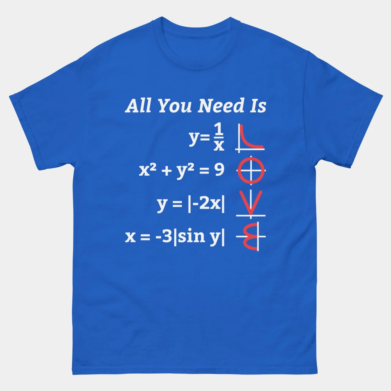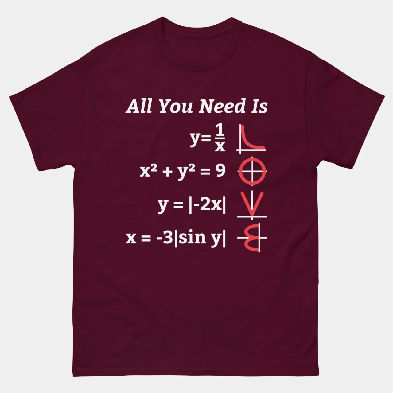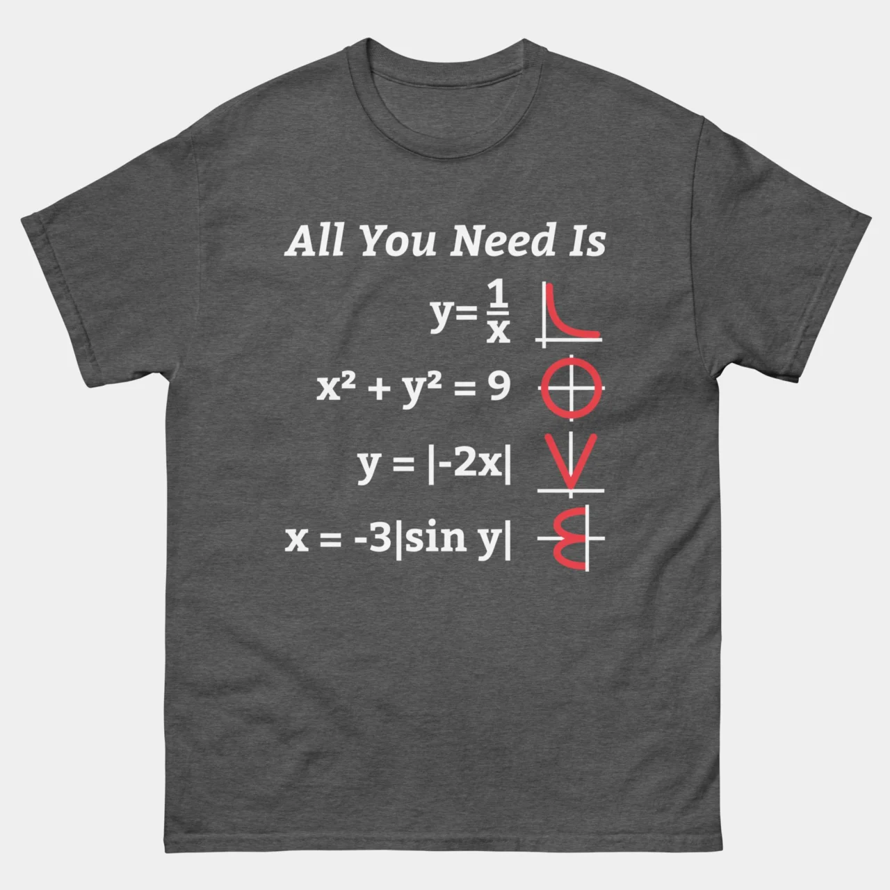 All You Need Is Love Math Function Graph Equation T-Shirt – Funny Math T-shirt – Mathematics Teacher Shirt – Classic Unisex Heavy Cotton T-Shirt by Tech Geeks Apparel: