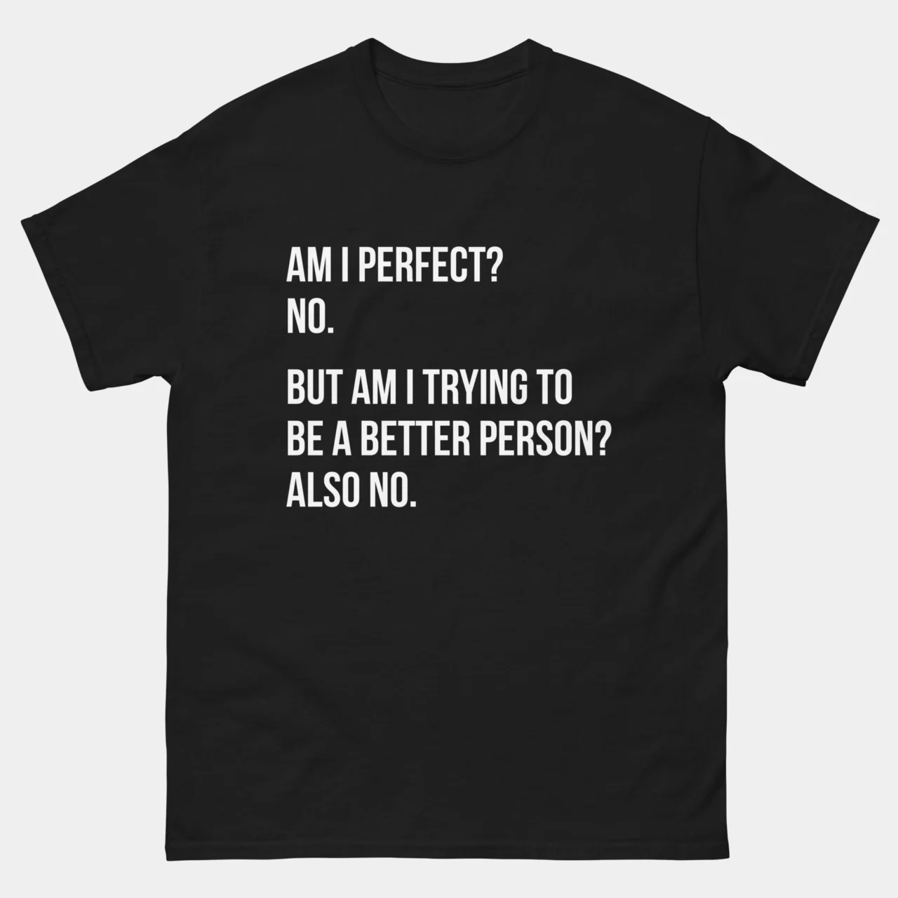 #AmIPerfectNo #BrutalHonesty #SarcasticStyle #FunnyTshirts #RelatableHumor #AntiSelfHelp #MinimalistFashion #Mood #SassyTee #ZeroEffort
