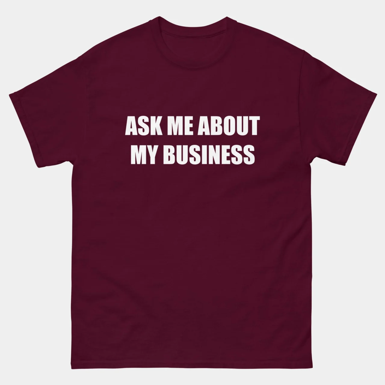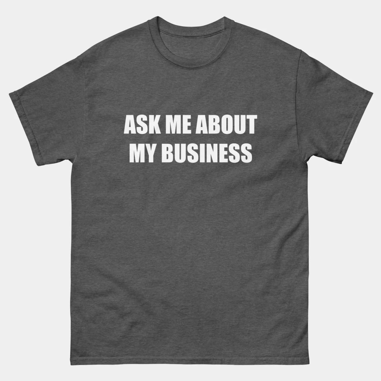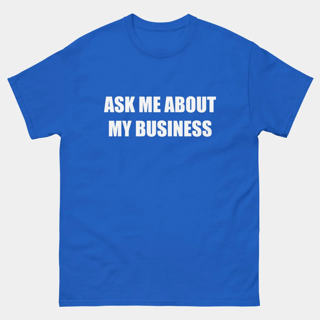 Buy Ask Me About My Business Shirt. A bold statement piece, this “Ask Me About My Business” t-shirt is perfect for entrepreneurs, small business owners, hustlers, and startup founders. Wear it to networking events, conferences, or casual meetups to spark conversations.