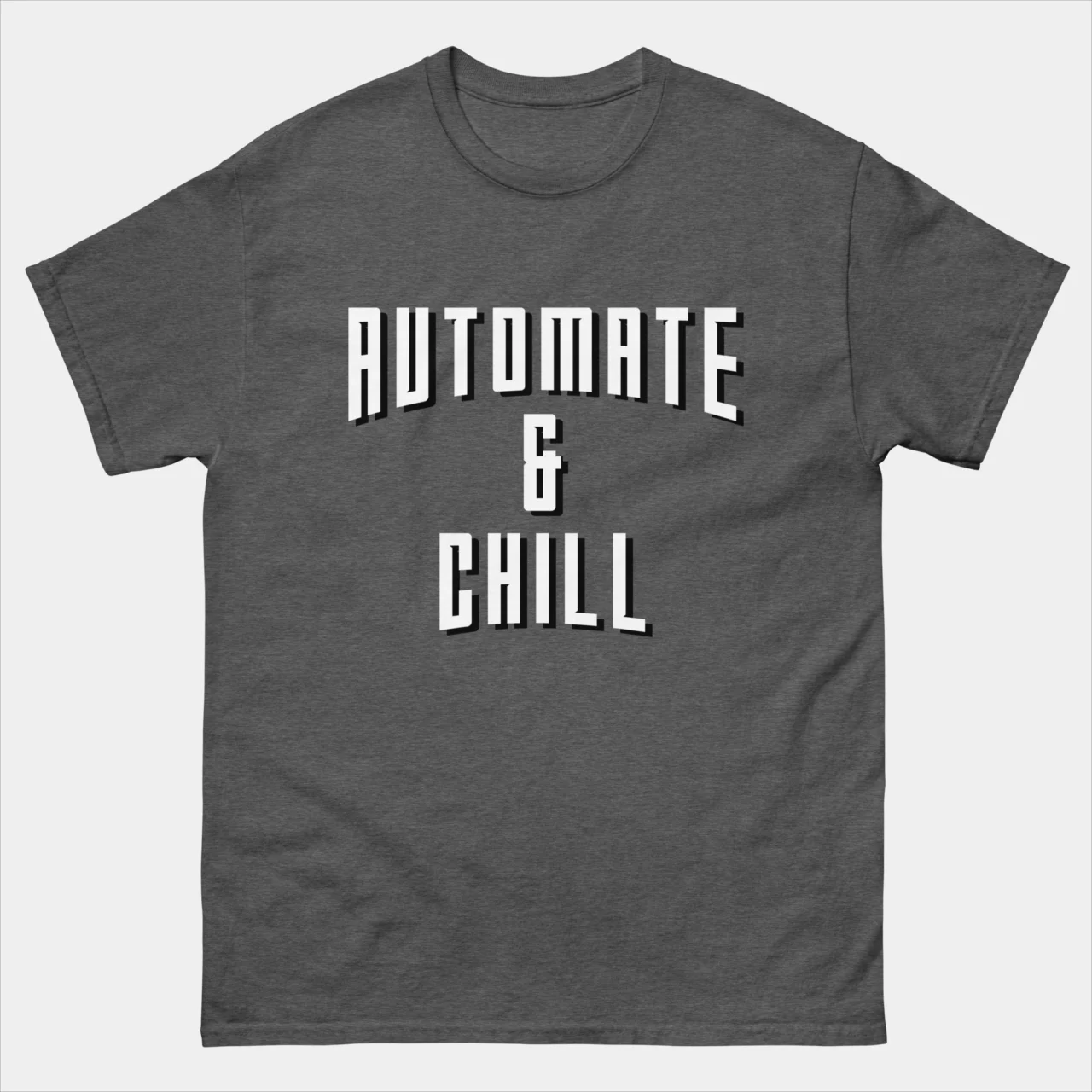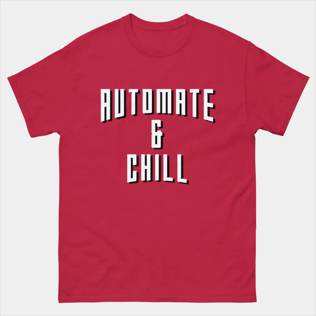 Automate And Chill Developer T-Shirt – Classic Unisex Heavy Cotton T-Shirt by Tech Geeks Apparel: