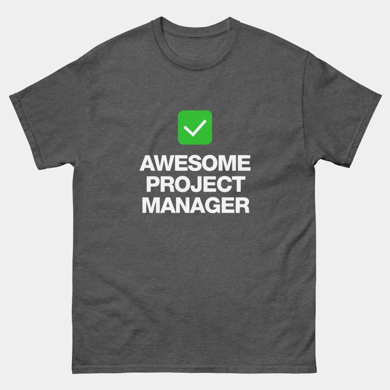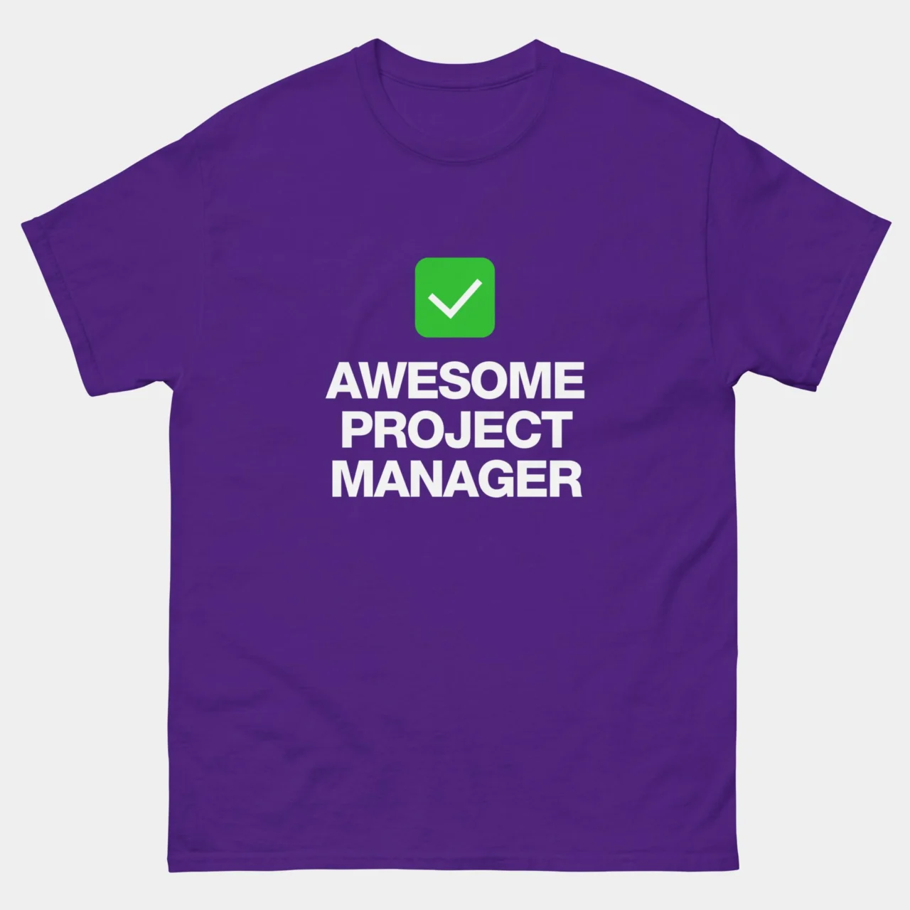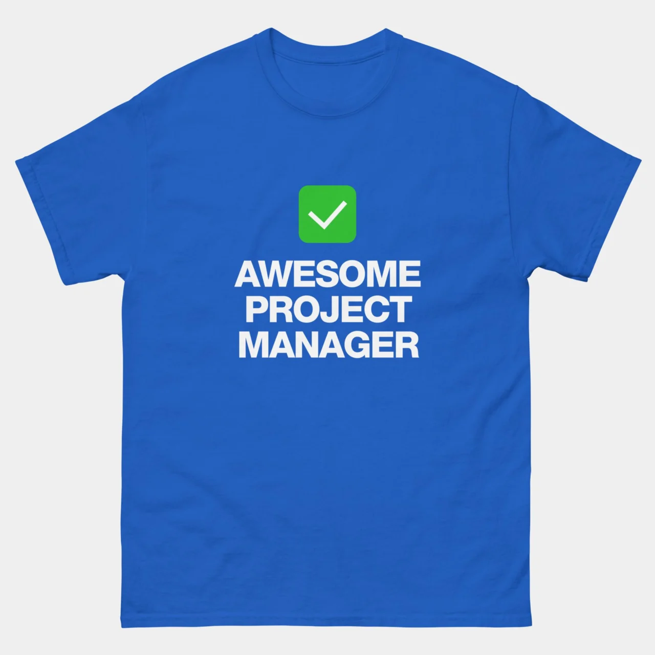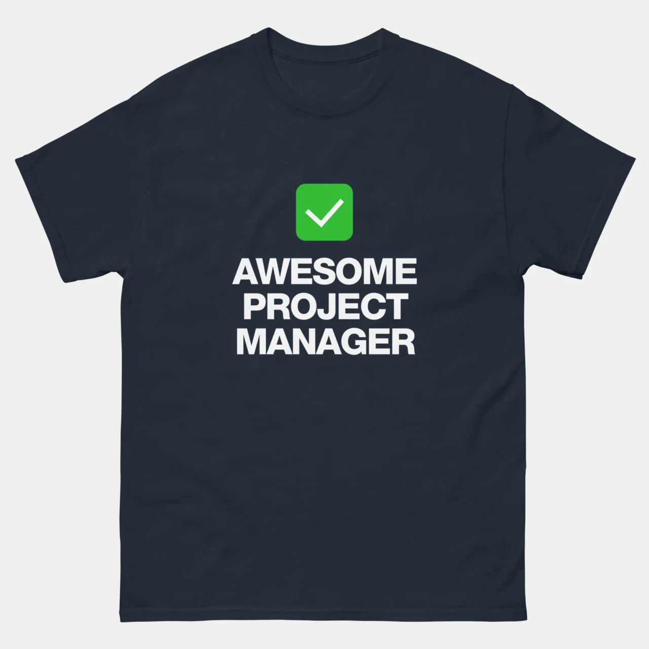 Awesome Project Manager T-Shirt: because managing projects is a superpower! If you organize chaos, handle deadlines, and keep teams moving forward, this funny PM t-shirt is for you.