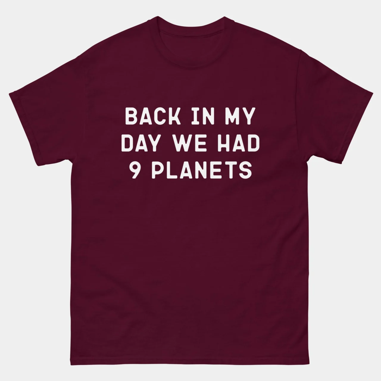 Back In My Day We Had Nine Planets – Funny Astronomy T-Shirt – Funny Science T-Shirt – Classic Unisex Heavy Cotton T-Shirt by Tech Geeks Apparel: