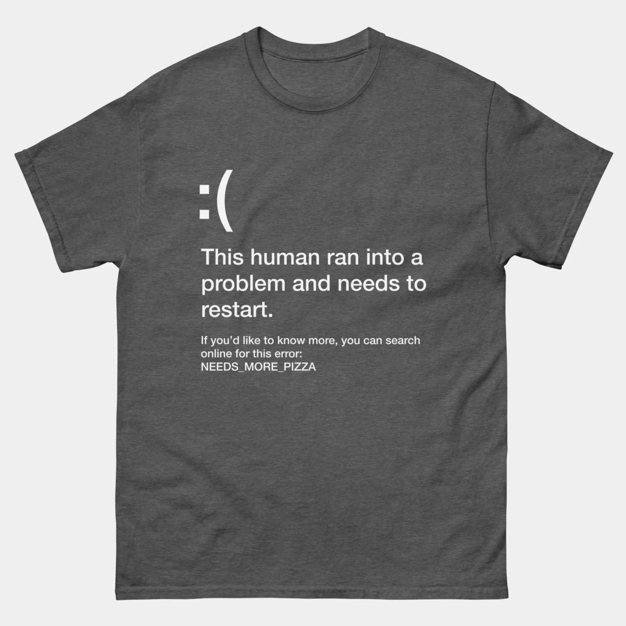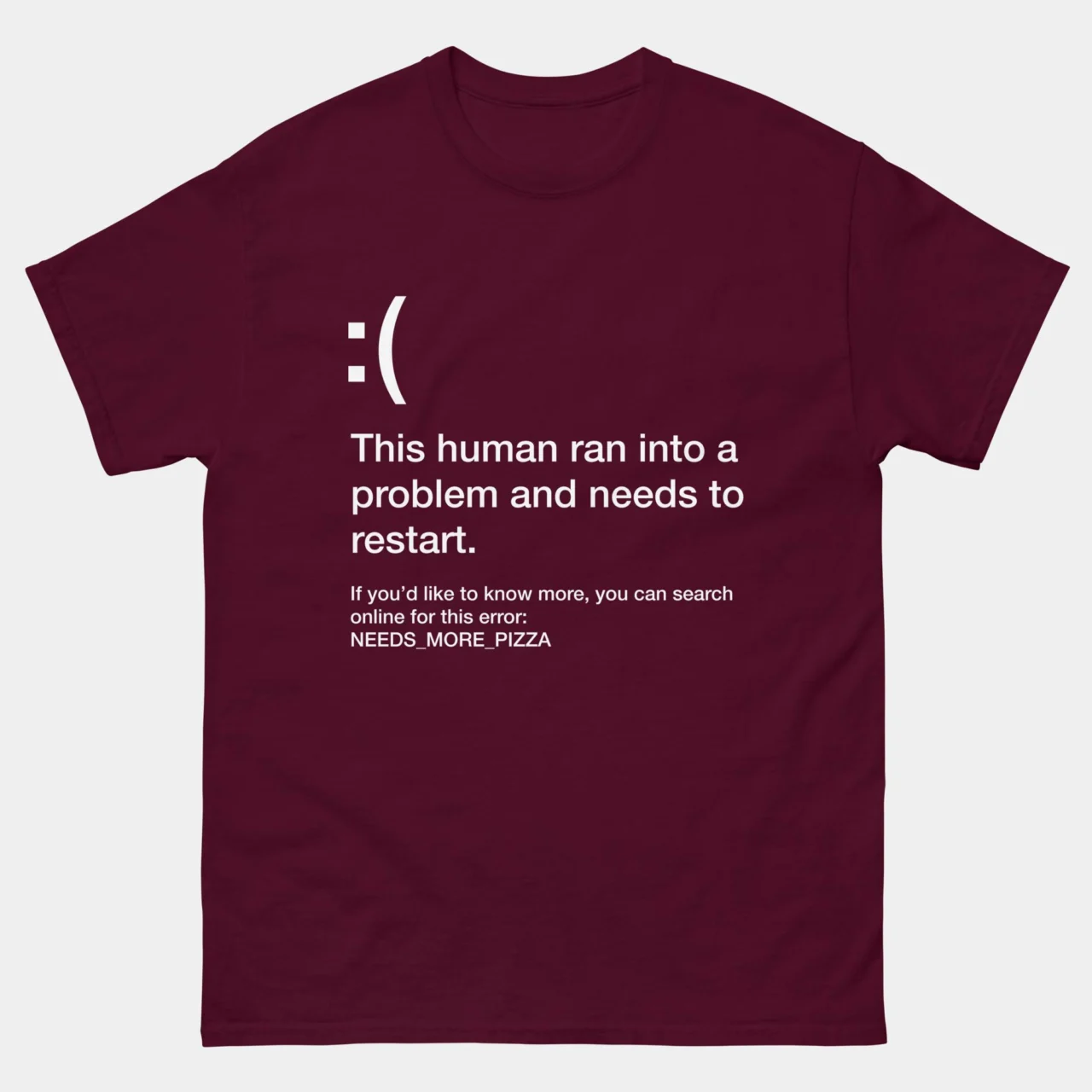 #BlueScreenOfDeath #BSODTee #NeedsMorePizza #ProgrammerHumor #FunnyCoderGift #WindowsParody #TechHumorApparel #RestartHumanError #ITProfessionalGift #PizzaLover