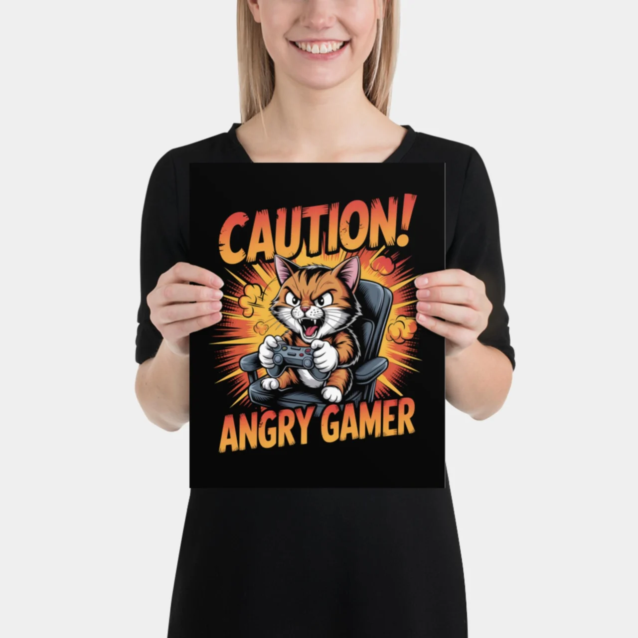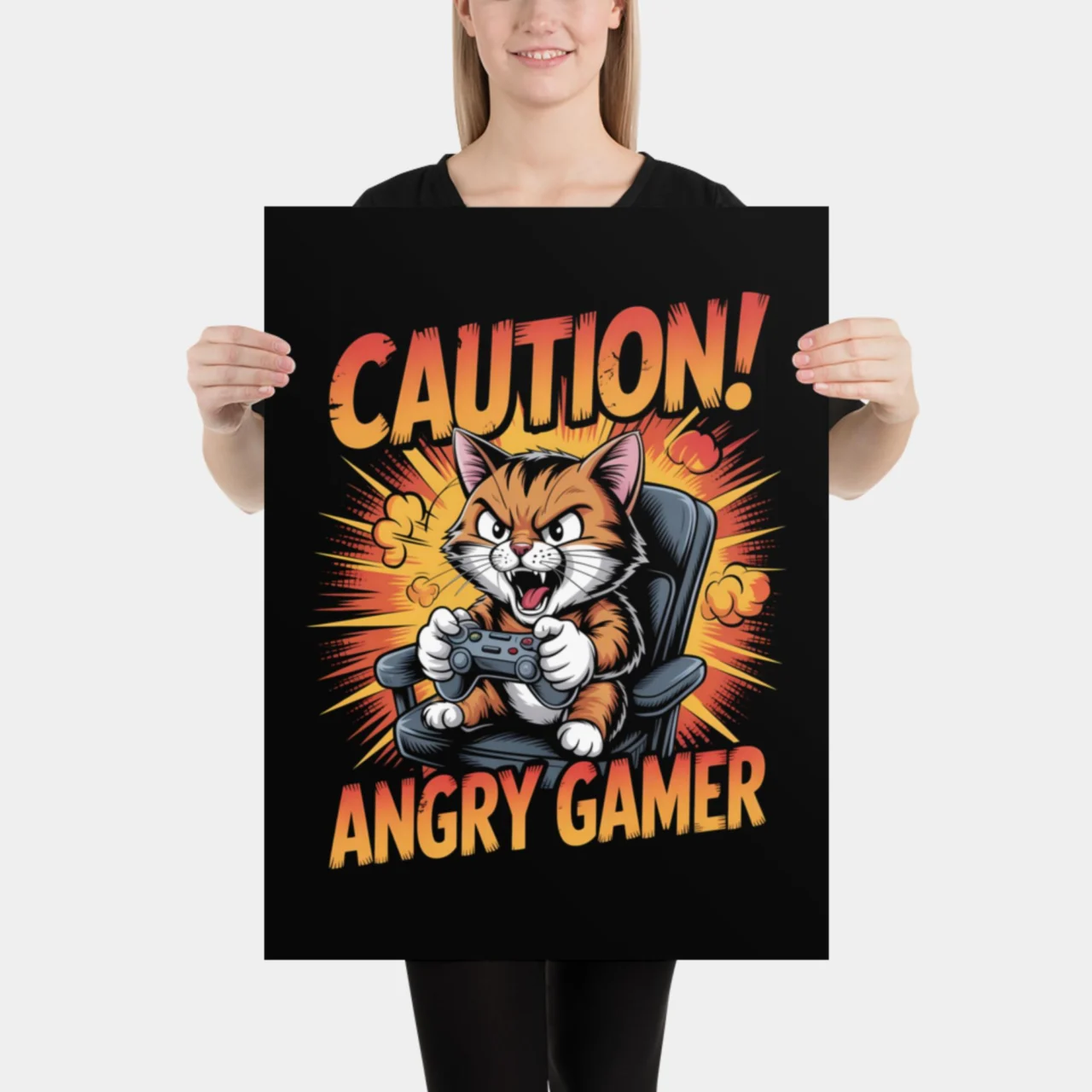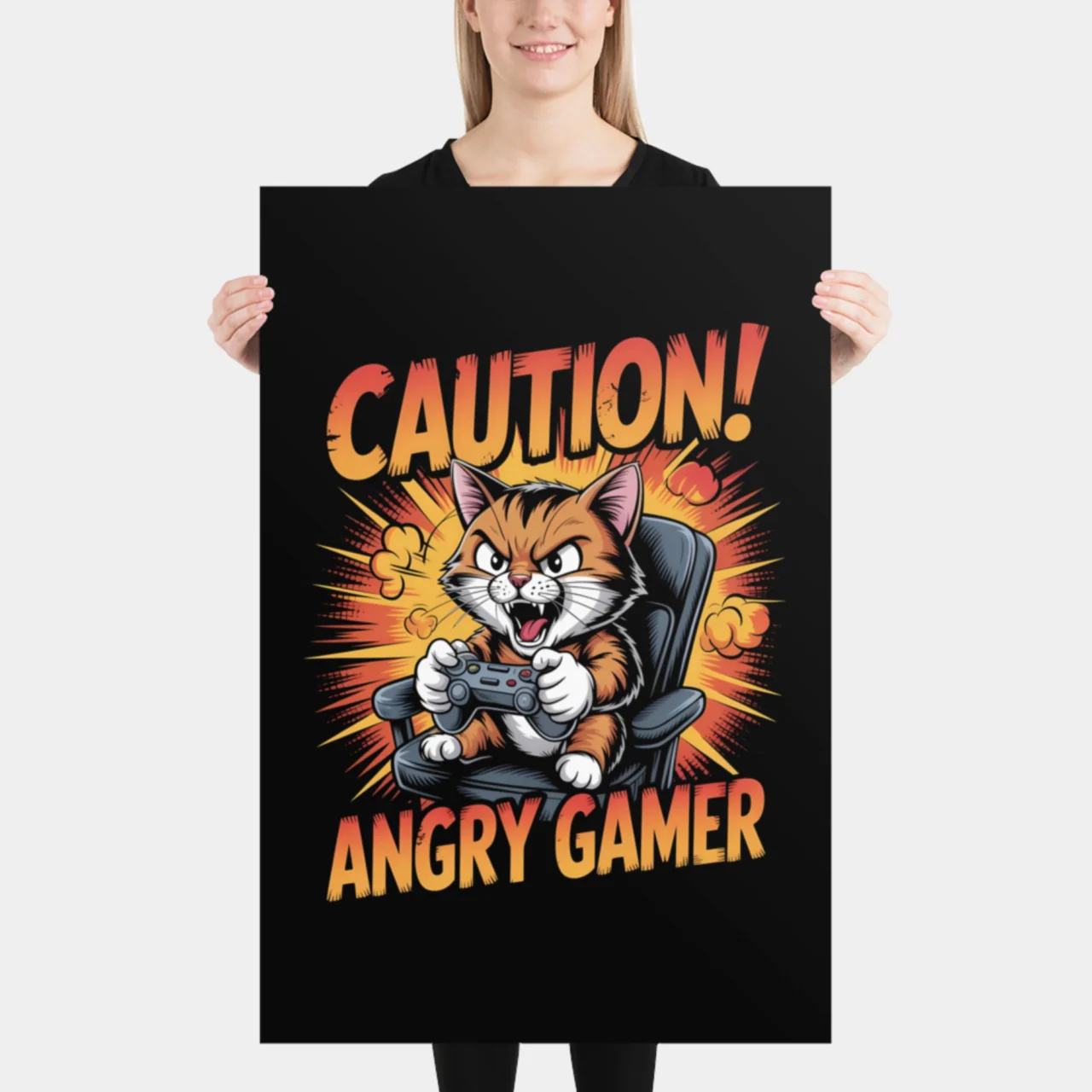 #AngryGamerPoster #FunnyCatGaming #HilariousGameRoom #GamerDoorSign #VideoGameFanGift #GameRoomDecor #CautionGamer #CatLoverGift