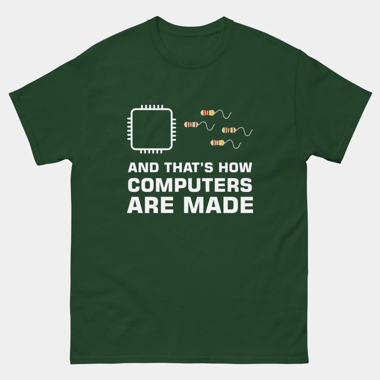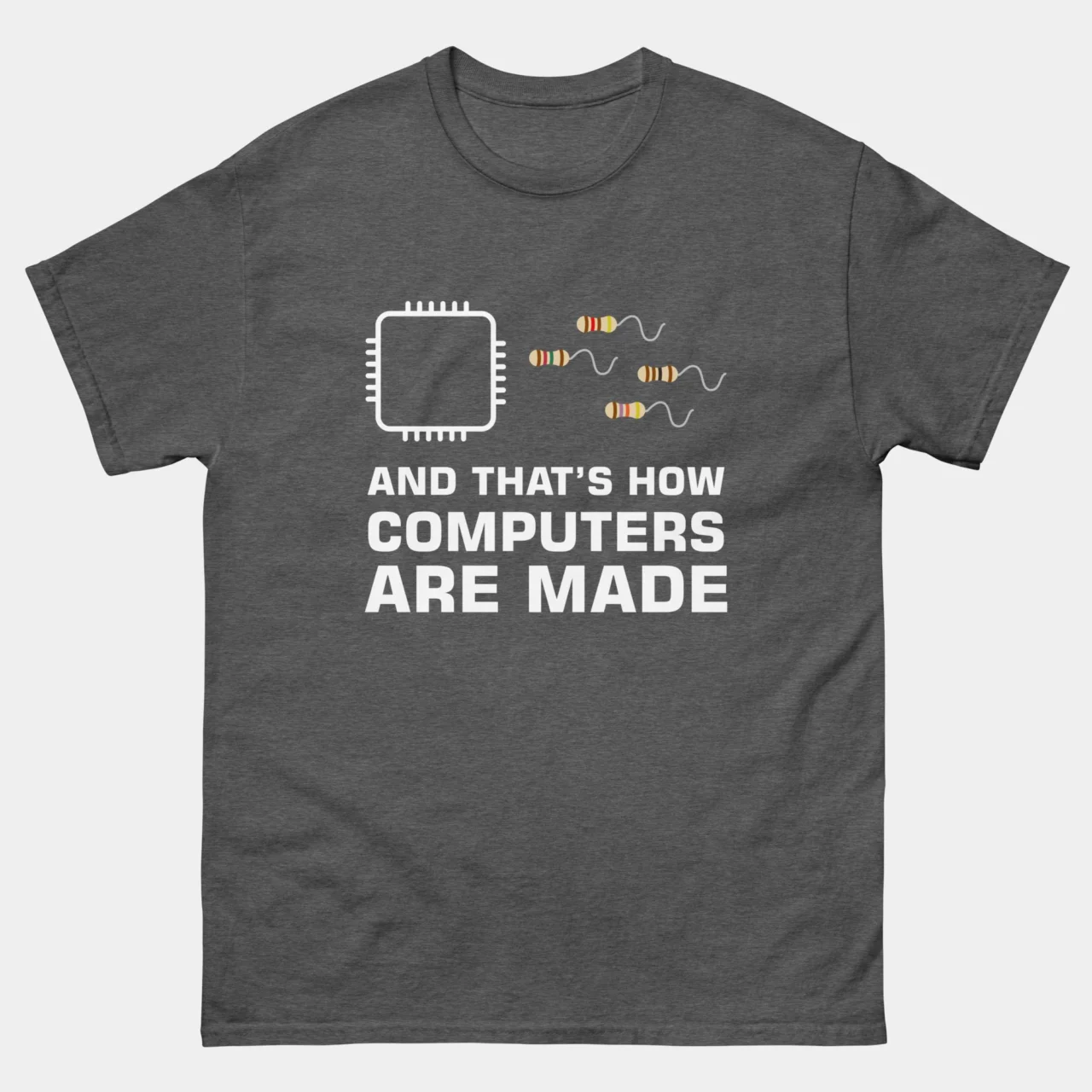 Chip Resistor Funny Computer Engineer T-Shirt – And That’s How Computers Are Made Shirt – Classic Unisex Heavy Cotton T-Shirt by TechGeeksApparel: