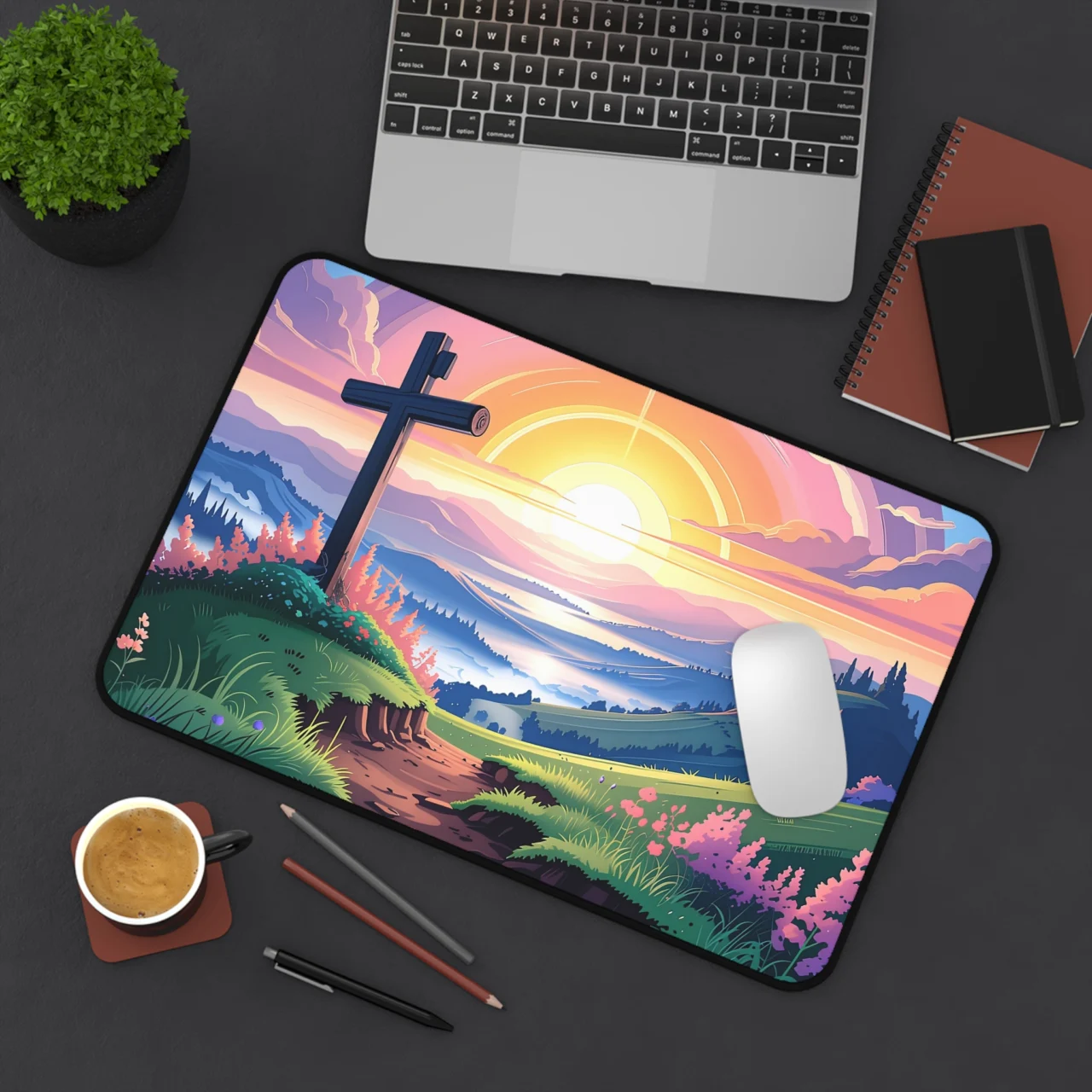 #ChristianSetup #FaithAndWork #DeskGoals #InspirationalDecor #MountainSunrise #ChristianGifts #OfficeInspiration #NatureAesthetic #DeskMat #PrayerSpace