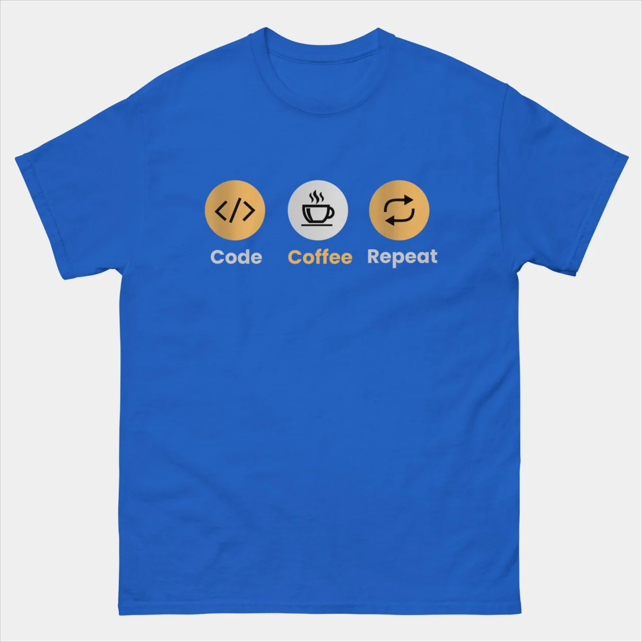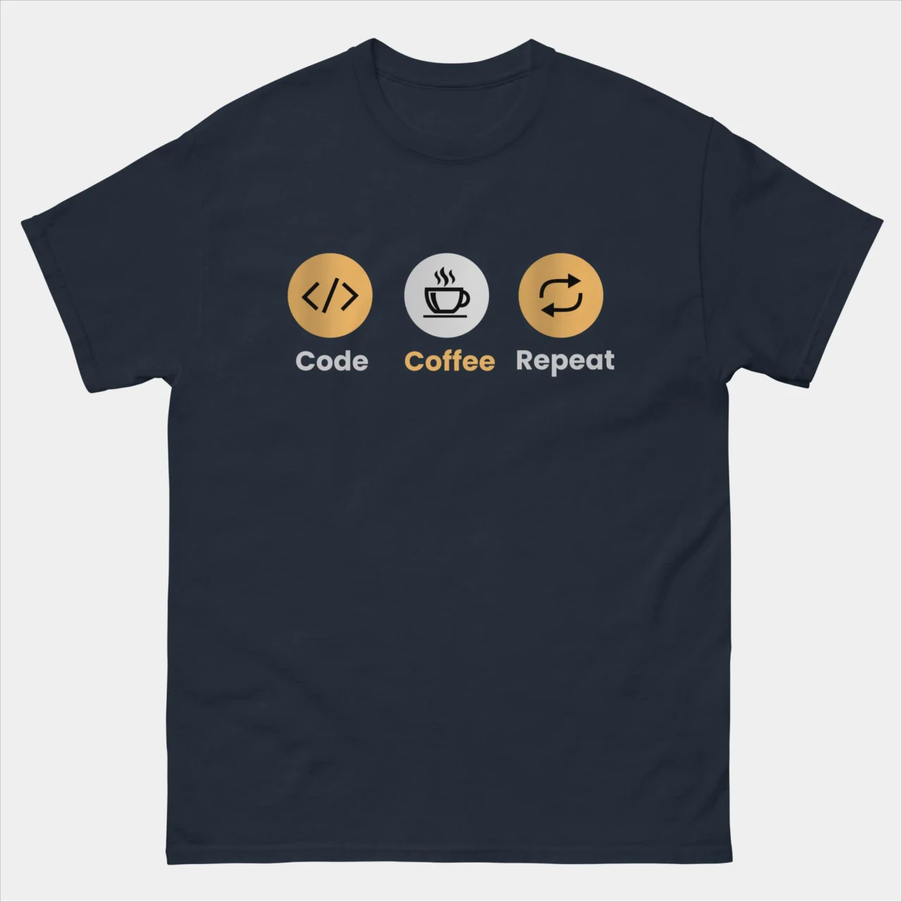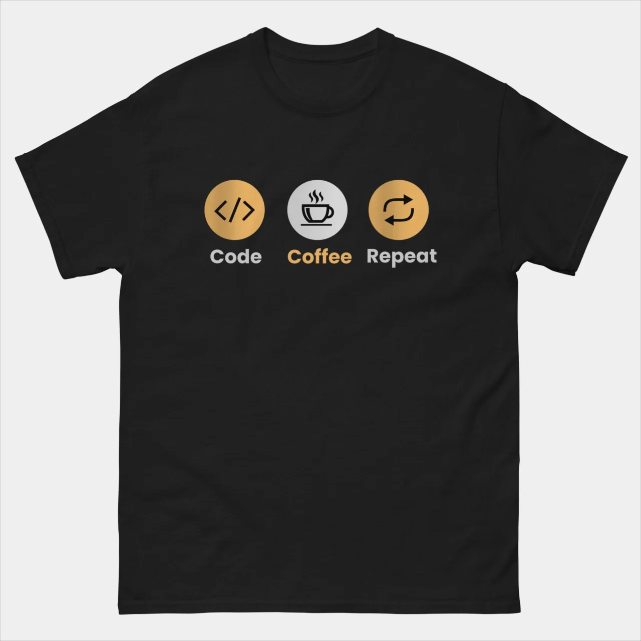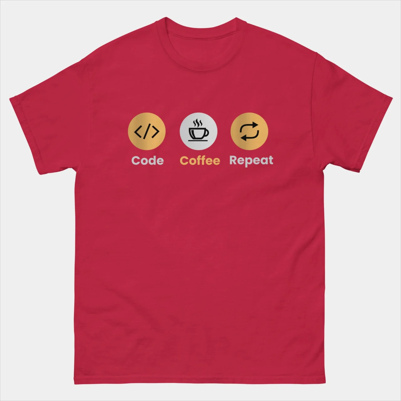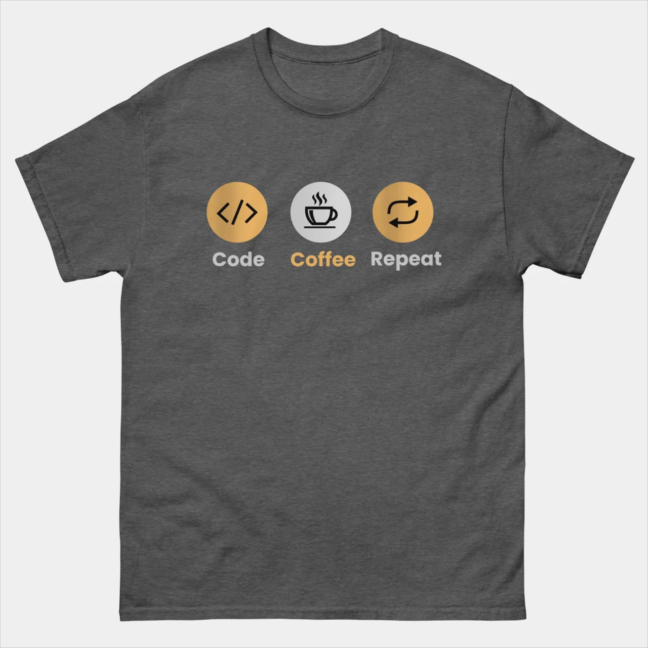 Code Coffee Repeat T-Shirt – Classic Unisex Heavy Cotton T-Shirt by Tech Geeks Apparel: