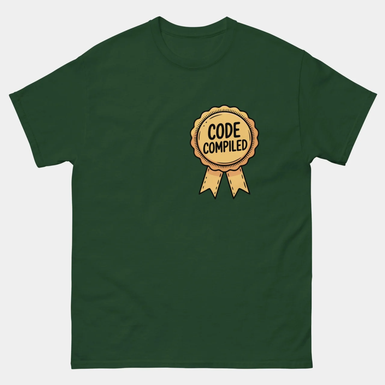 Code Compiled Funny Programmer T-Shirt, Achievement Badge Software Engineer Tee, Humorous Coding Milestone Shirt, Gift for Web Developers & Data Scientists