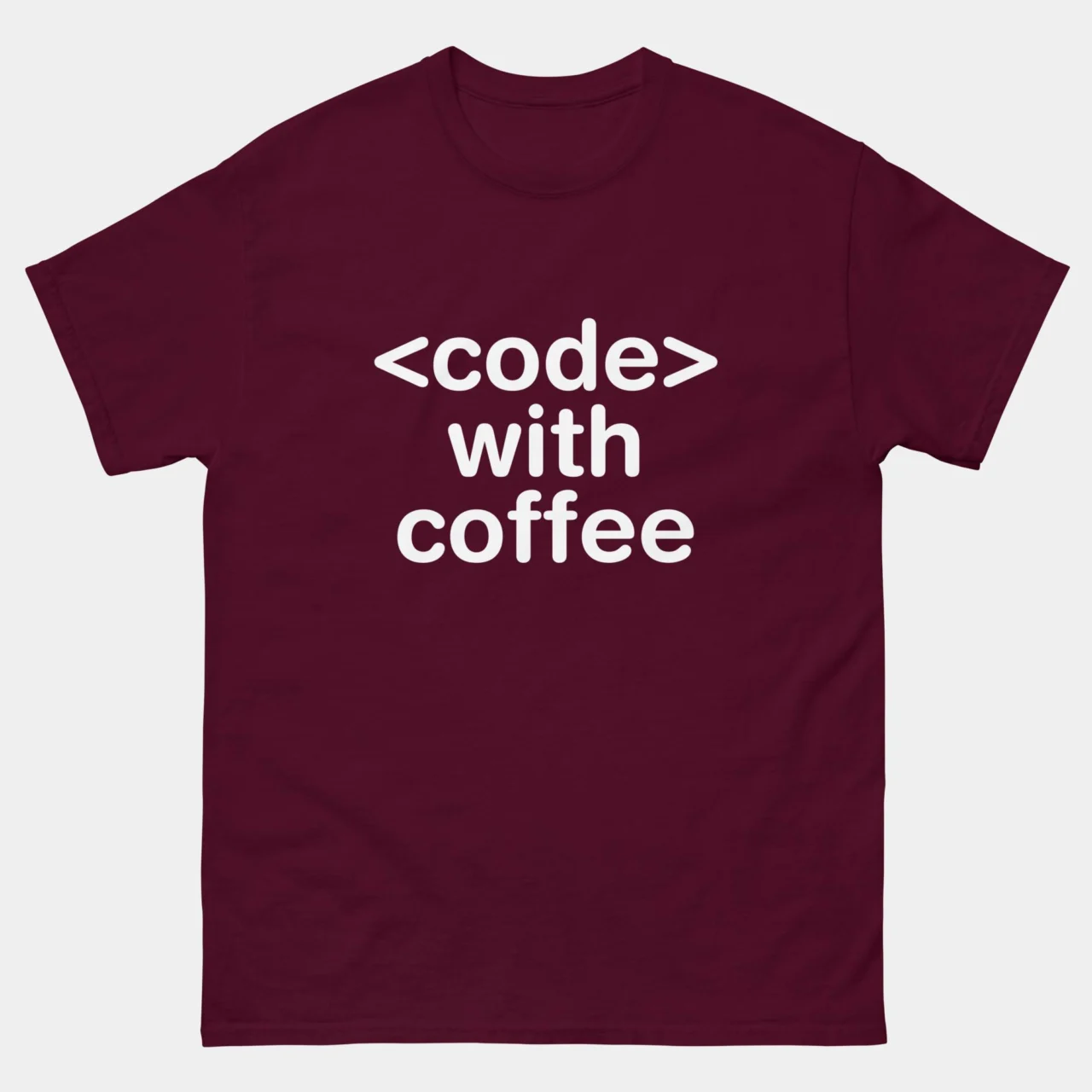 Code With Coffee T-Shirt – Coffee and Code Programmer Shirt – Caffeinated Developer Tee – Funny Coding Gift – Classic Unisex Heavy Cotton T-Shirt by TechGeeksApparel: