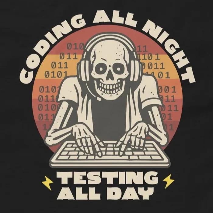This skeleton’s still pushing code and squashing bugs. For devs, testers, and QA pros who know that shipping features means sacrificing sleep.