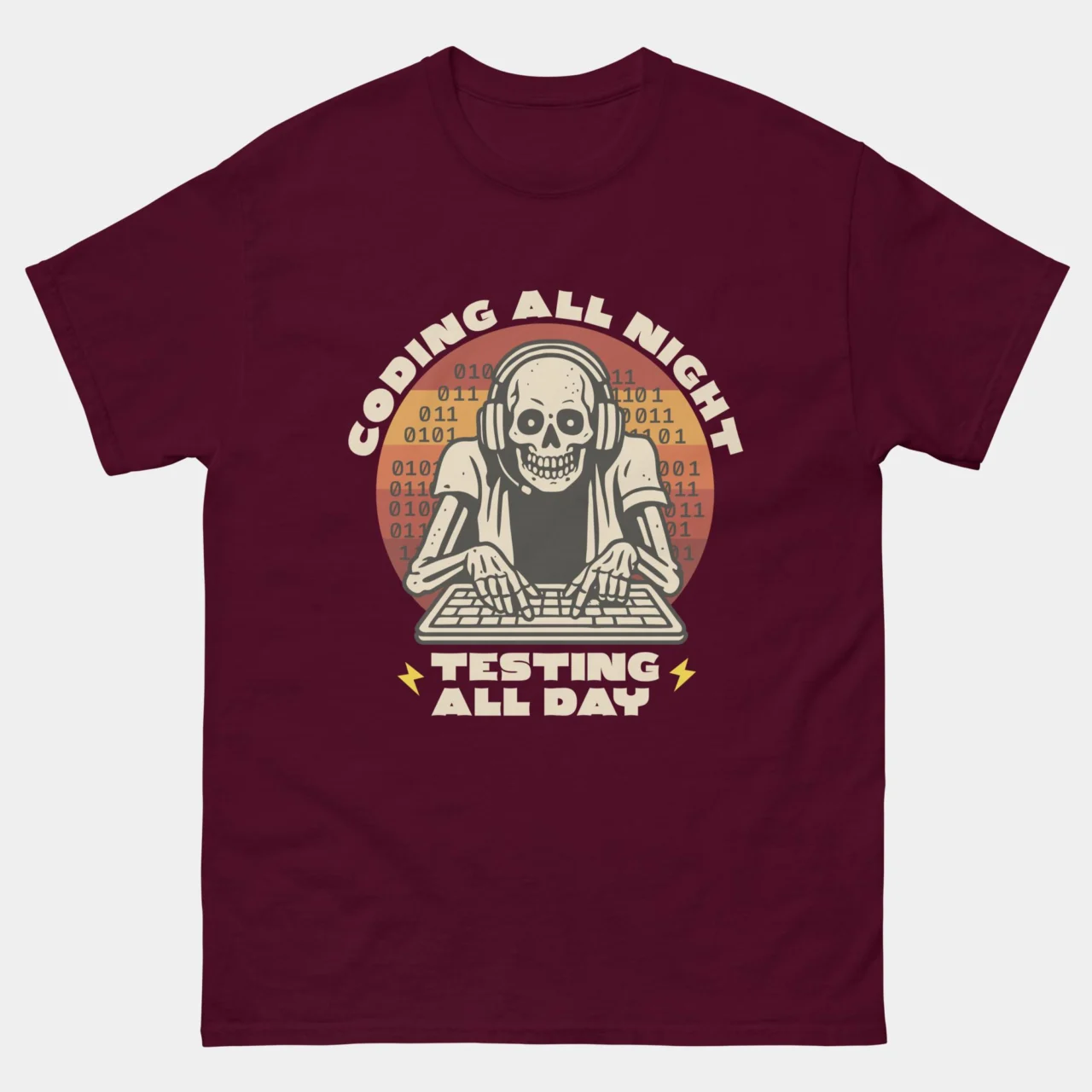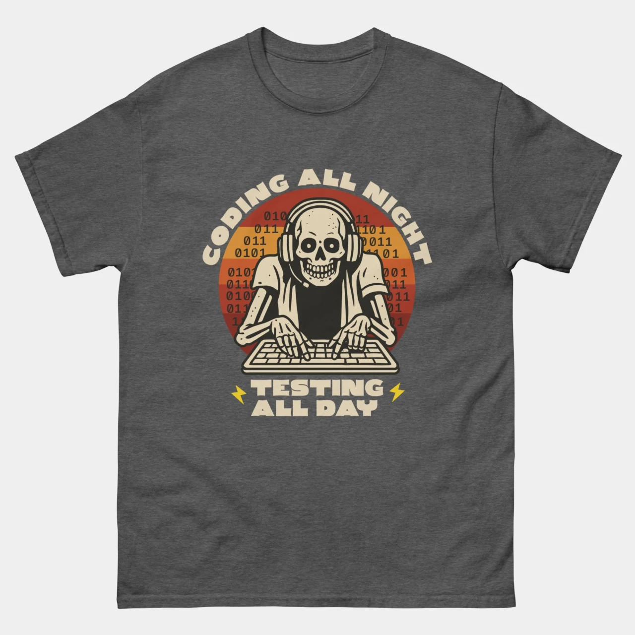 Coding All Night Testing All Day T-Shirt – Funny Programmer Skeleton Shirt – Developer QA Debugging Life Tee – Classic Unisex Heavy Cotton T-Shirt by TechGeeksApparel: