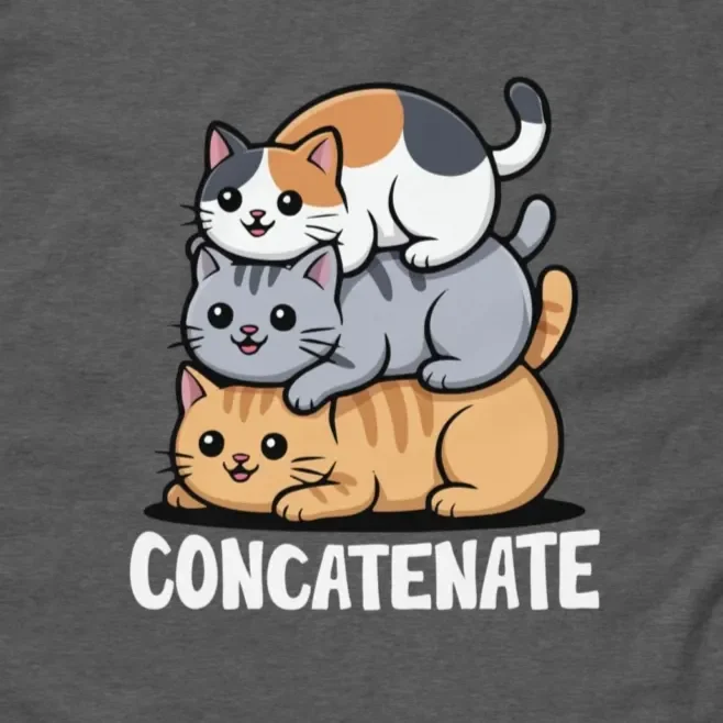 #Concatenate #DevHumor #CodingPuns #CatStack #ProgrammerLife #KawaiiCoding #SoftwareEngineering #TechFashion #FunnyTshirts #CatLovers