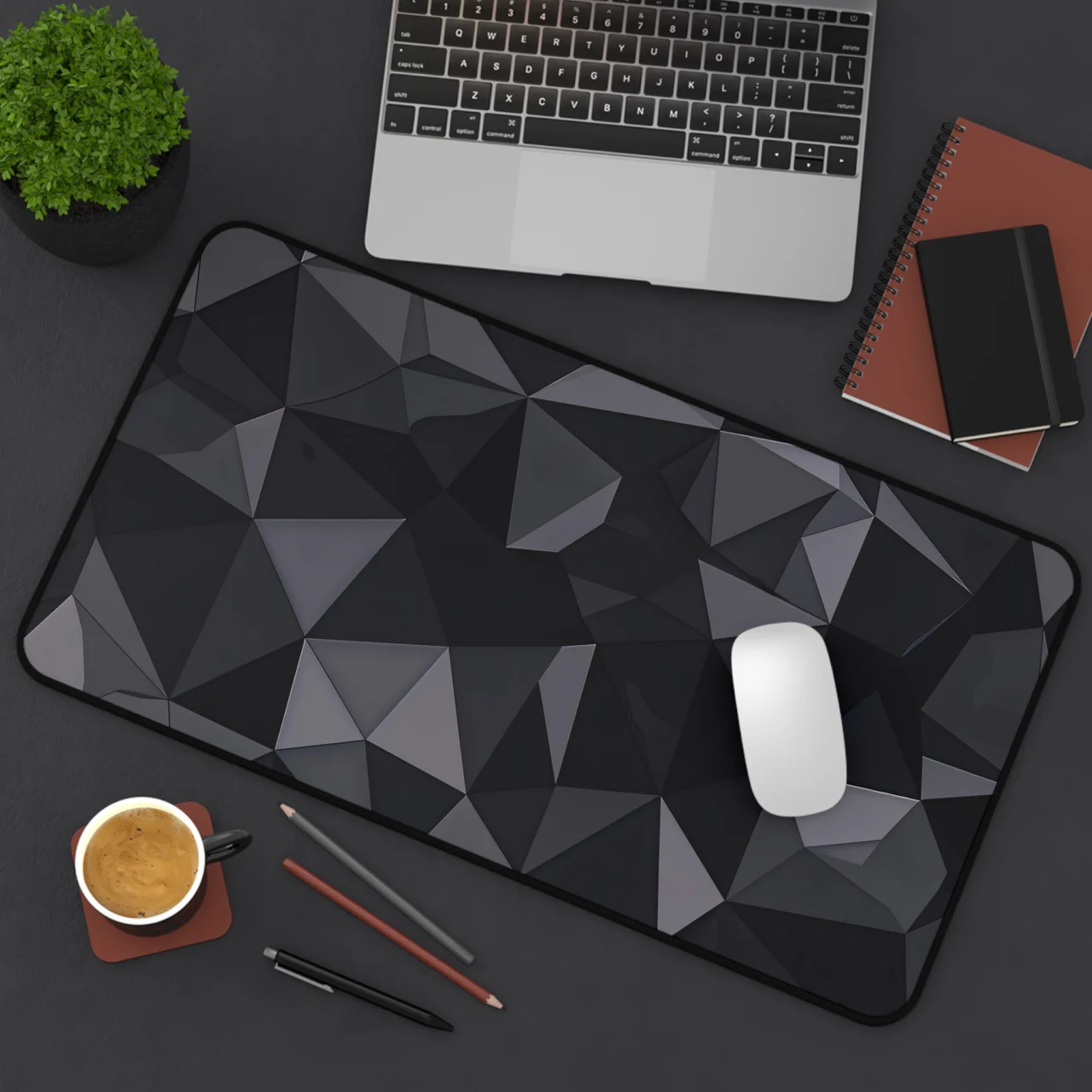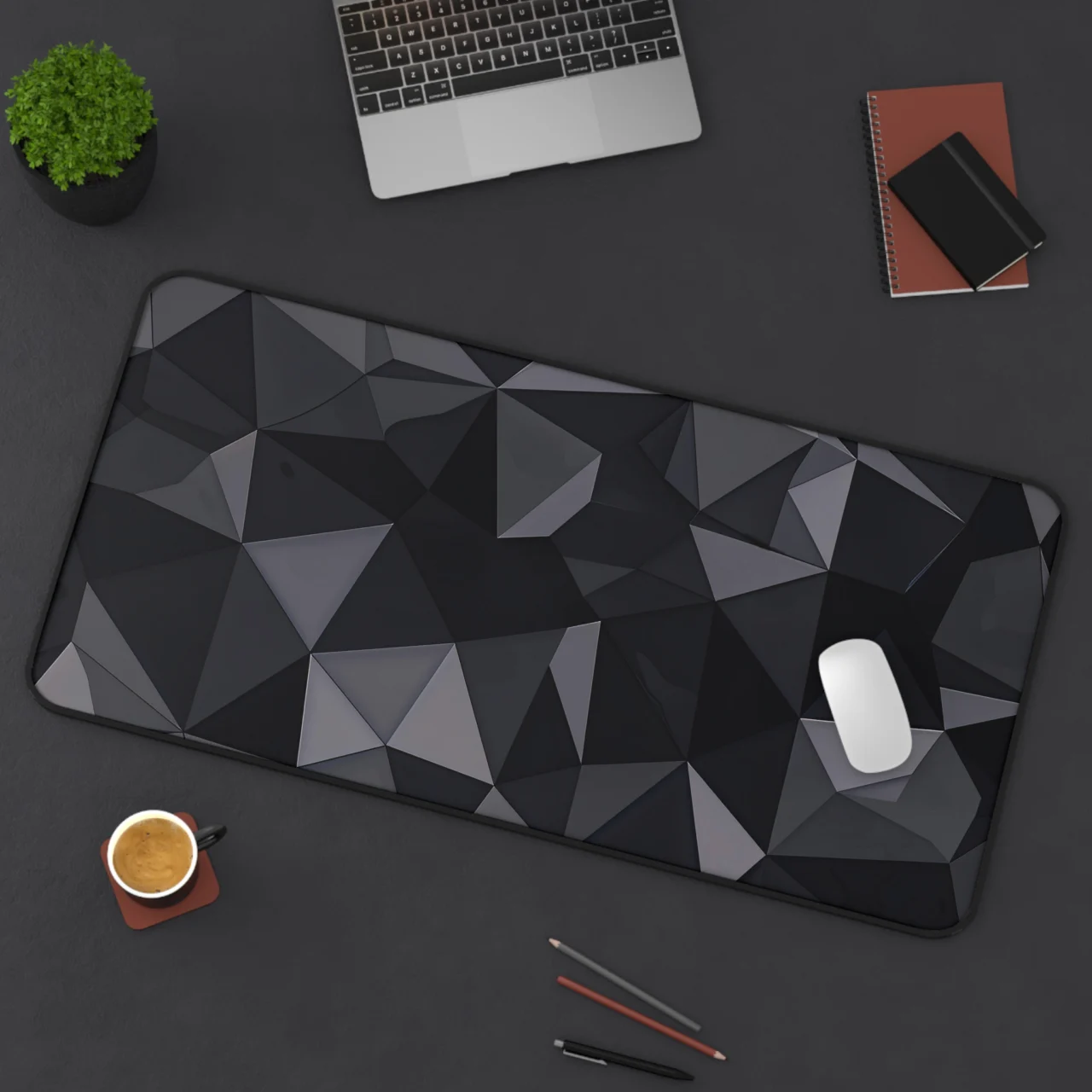 Dark Charcoal Polygonal Desk Mat, Minimalist Geometric Mousepad, Black Abstract Polygon Desk Pad, XL Extended Gaming Mat, Stealth Tech Office Decor