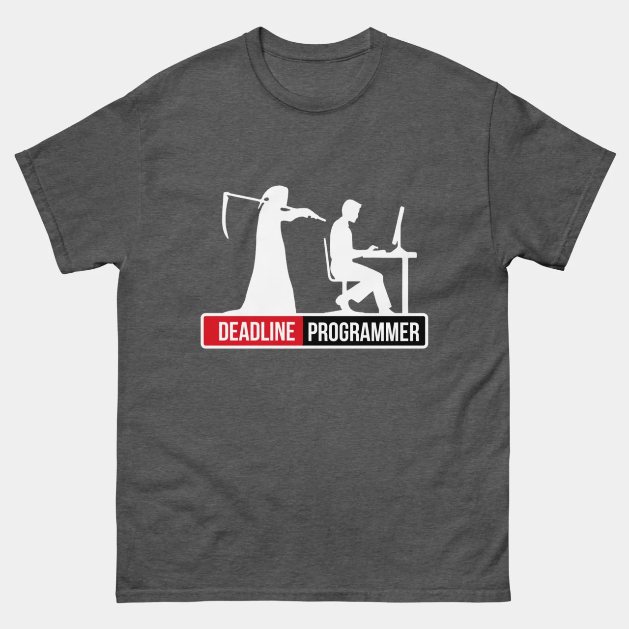 Deadline Programmer Funny T-Shirt – Software Developer Shirt – Grim Reaper Coding Humor – IT Geek Gift – Deadline Nightmare Tee – Classic Unisex Heavy Cotton T-Shirt by TechGeeksApparel: