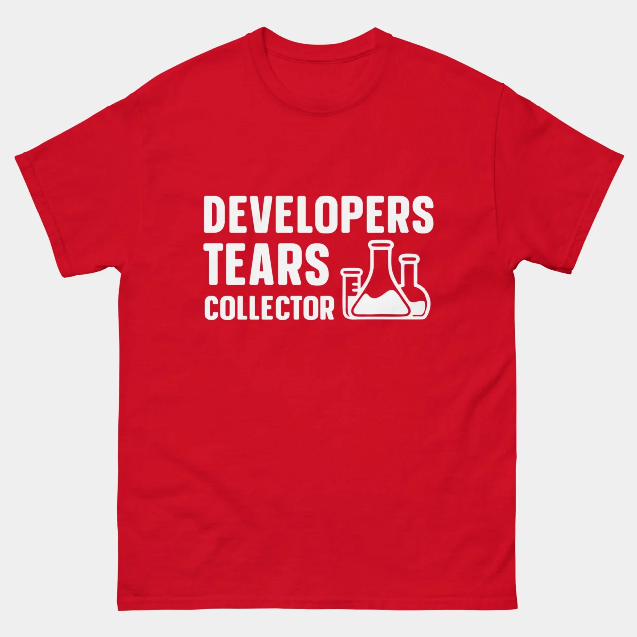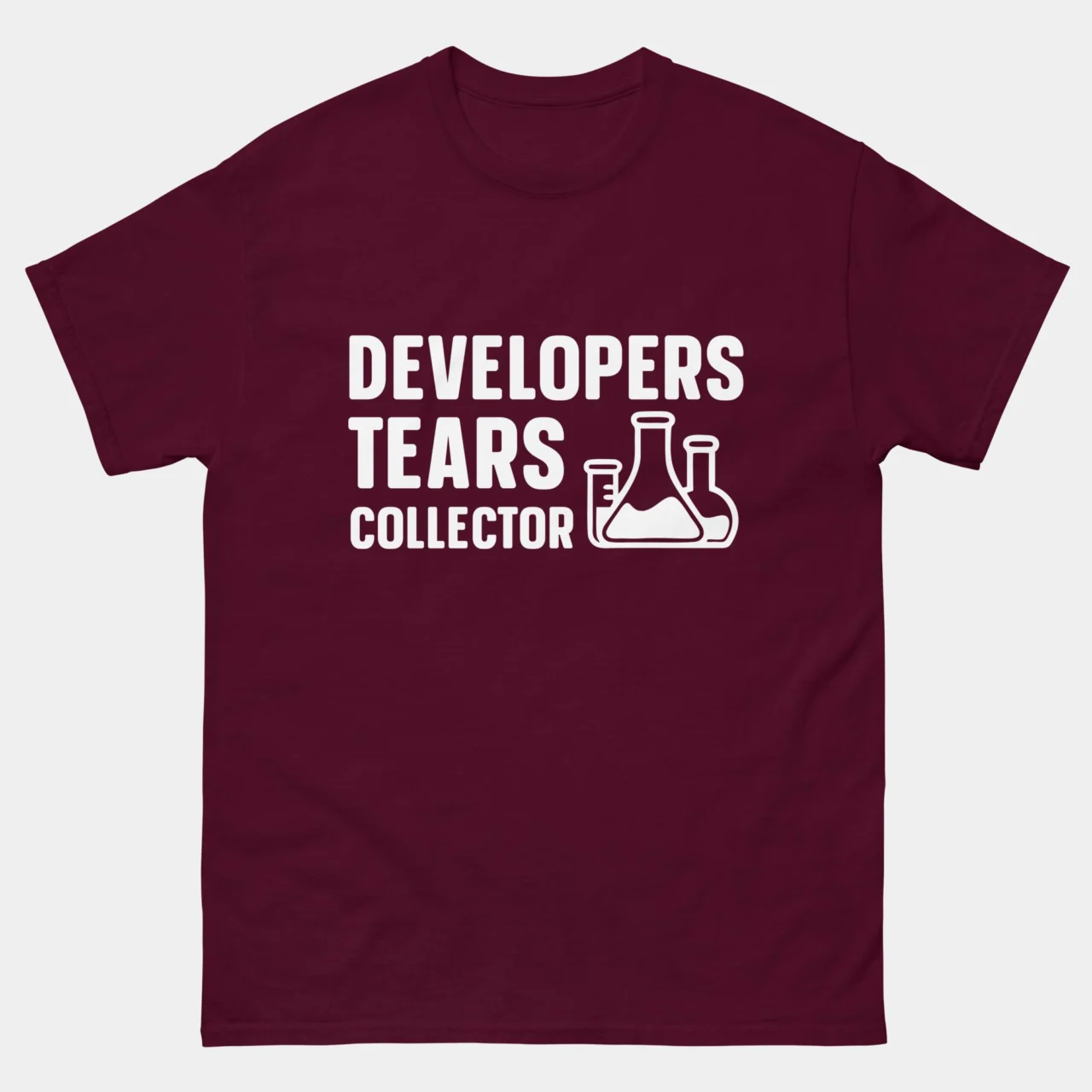 Developers Tears Collector T-Shirt – Funny QA Tester Shirt – I Make Developers Cry – Debugging & Testing Gift – 100% Organic – Classic Unisex Heavy Cotton T-Shirt by TechGeeksApparel: