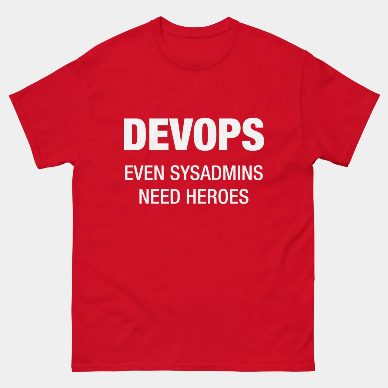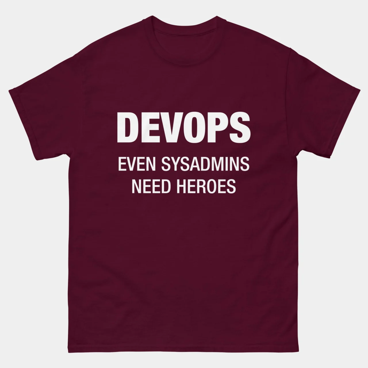 DevOps Even Sysadmins Need Heroes T-Shirt – Funny IT Engineer Shirt – SysAdmin & DevOps Life – Software Deployment Humor – Cloud Engineer Gift – Classic Unisex Heavy Cotton T-Shirt by TechGeeksApparel: