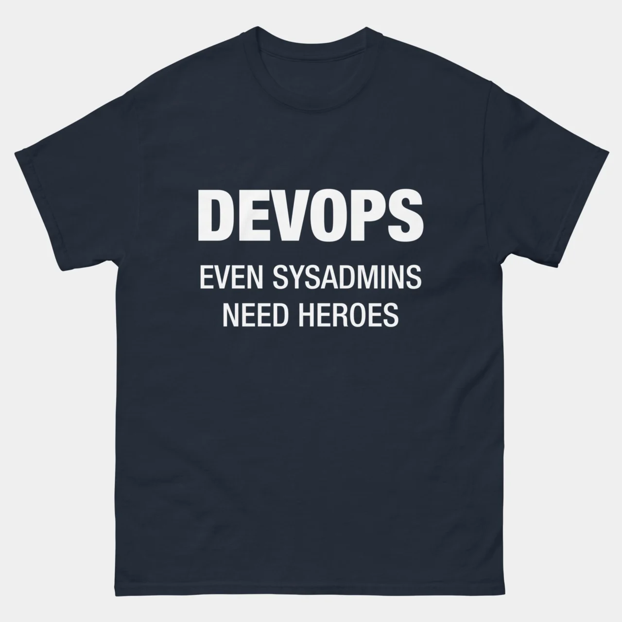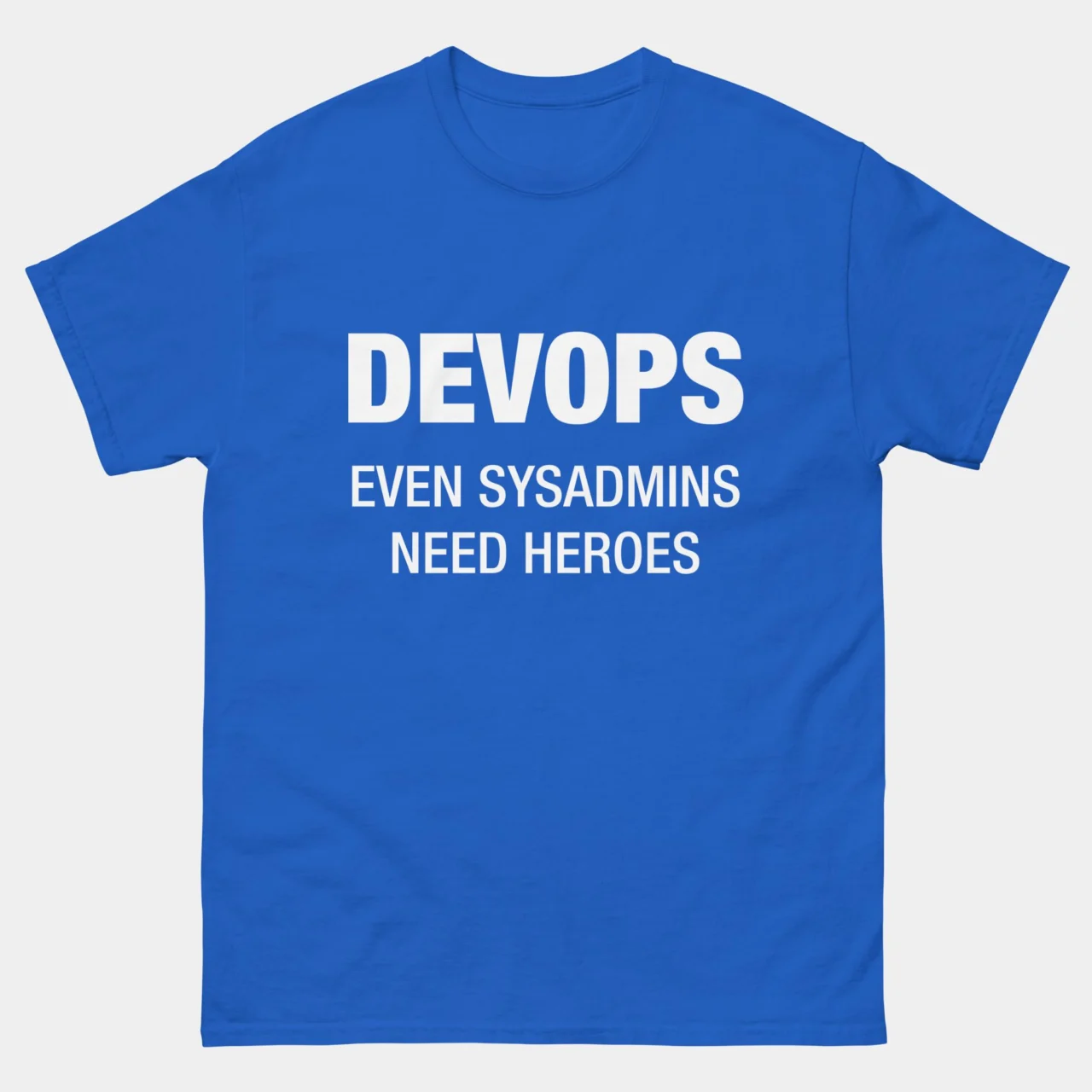 DevOps Even Sysadmins Need Heroes T-Shirt: If you’re in DevOps, cloud computing, or IT automation, you know that keeping systems online is a full-time job. This funny DevOps t-shirt is for the unsung heroes of IT who handle deployments, infrastructure, and automation.