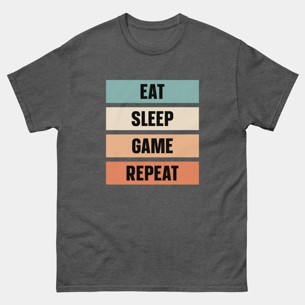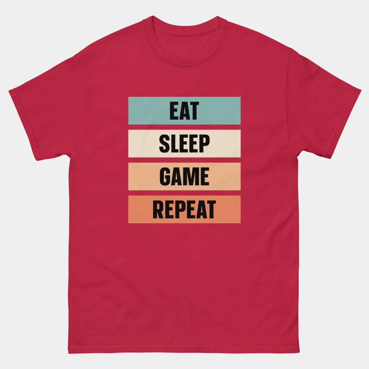 Eat Sleep Game Repeat T-Shirt – Funny Gamers Gaming Shirt – Ideal Gift For Gamer – Classic Unisex Heavy Cotton T-Shirt by Tech Geeks Apparel: