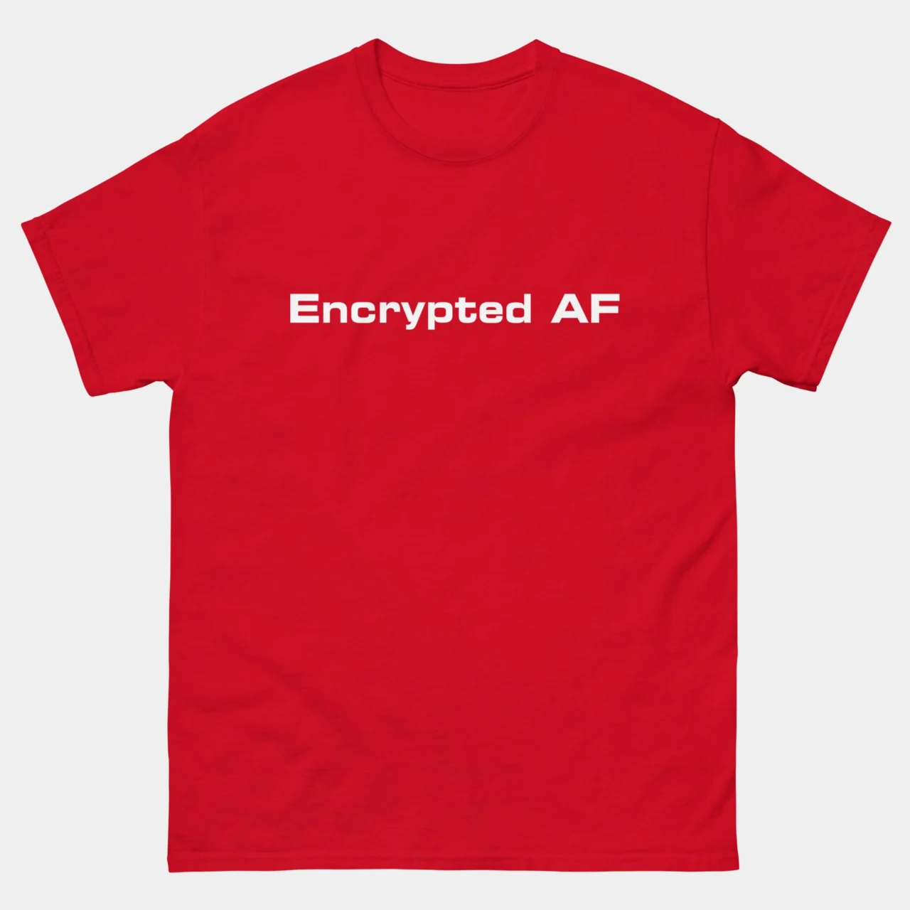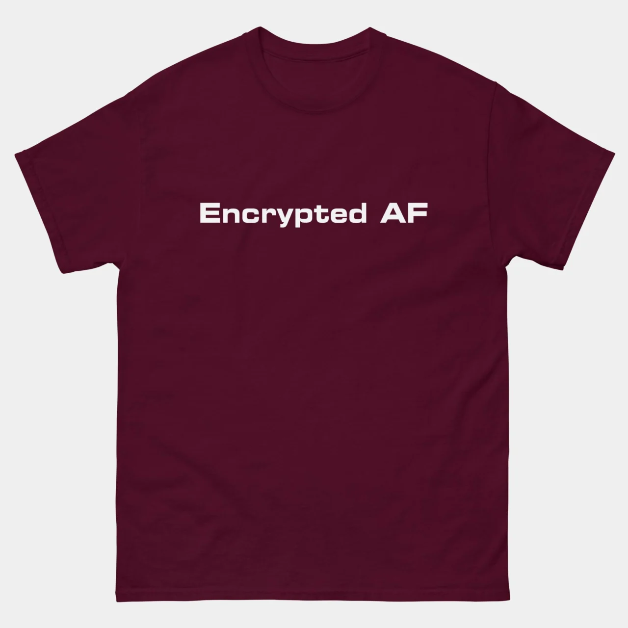 Encrypted AF T-Shirt – Funny Cybersecurity Shirt – Encryption Hacker Tee – Internet Security Cryptography Gift – Classic Unisex Heavy Cotton T-Shirt by TechGeeksApparel: