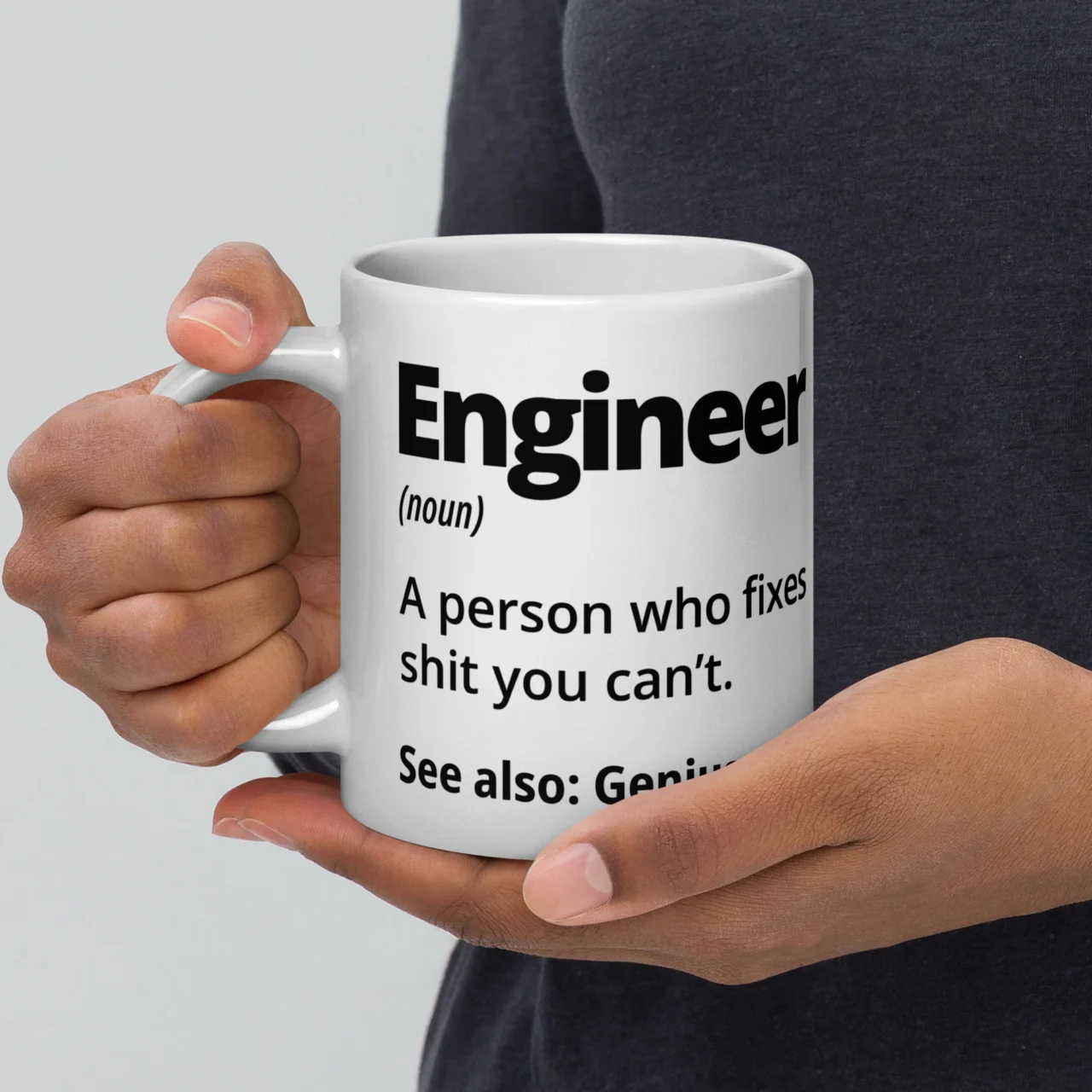 #EngineerLife #EngineeringHumor #FixIt #NutritionFacts #STEM #WorkplaceHumor #FunnyMugs #CivilEngineering #MechanicalEngineering #EngineerGifts