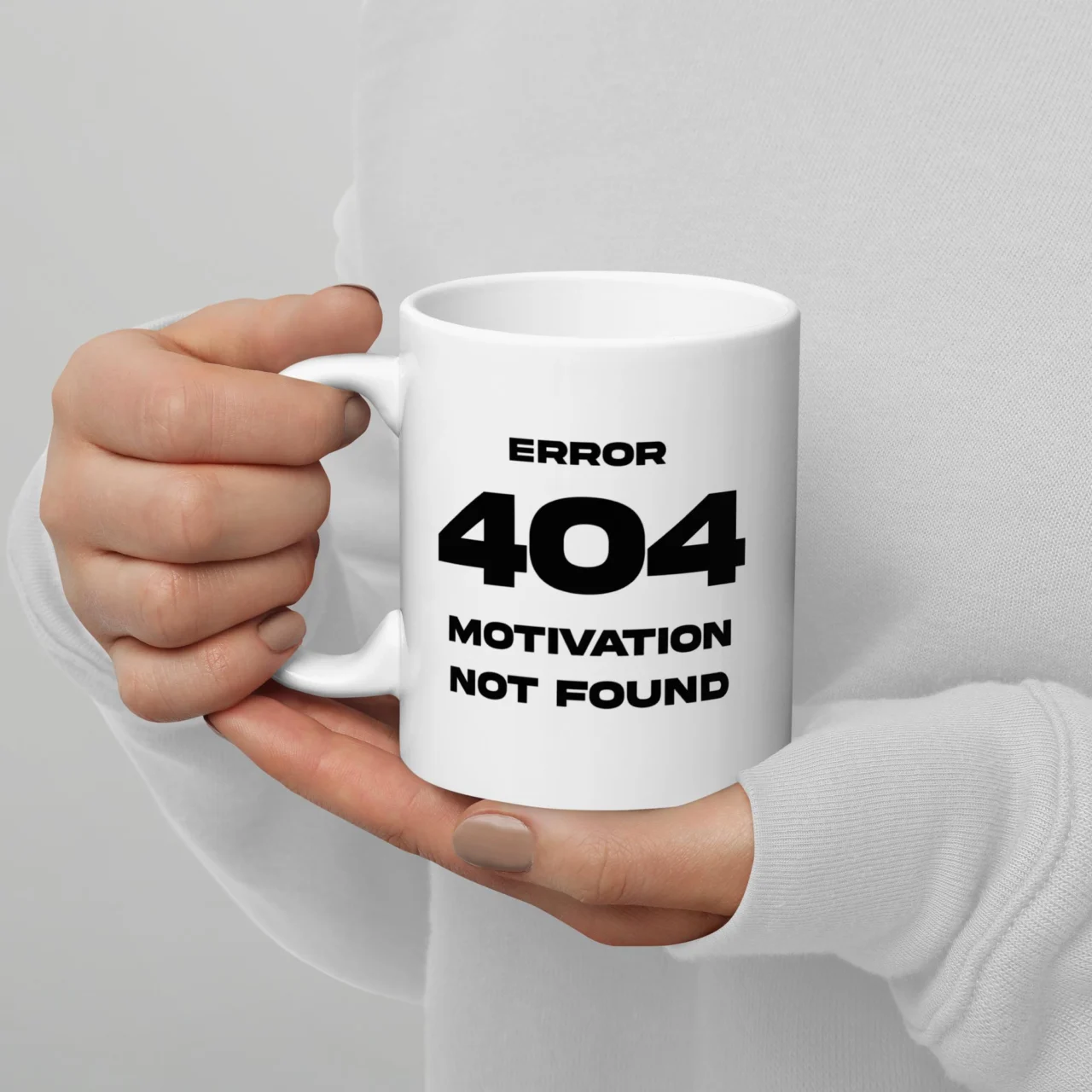 #Error404Mug #MotivationNotFound #FunnyProgrammerGift #TechHumourGift #LazyOfficeHumor #IntrovertCoffeeCup #CoworkerGiftIdea