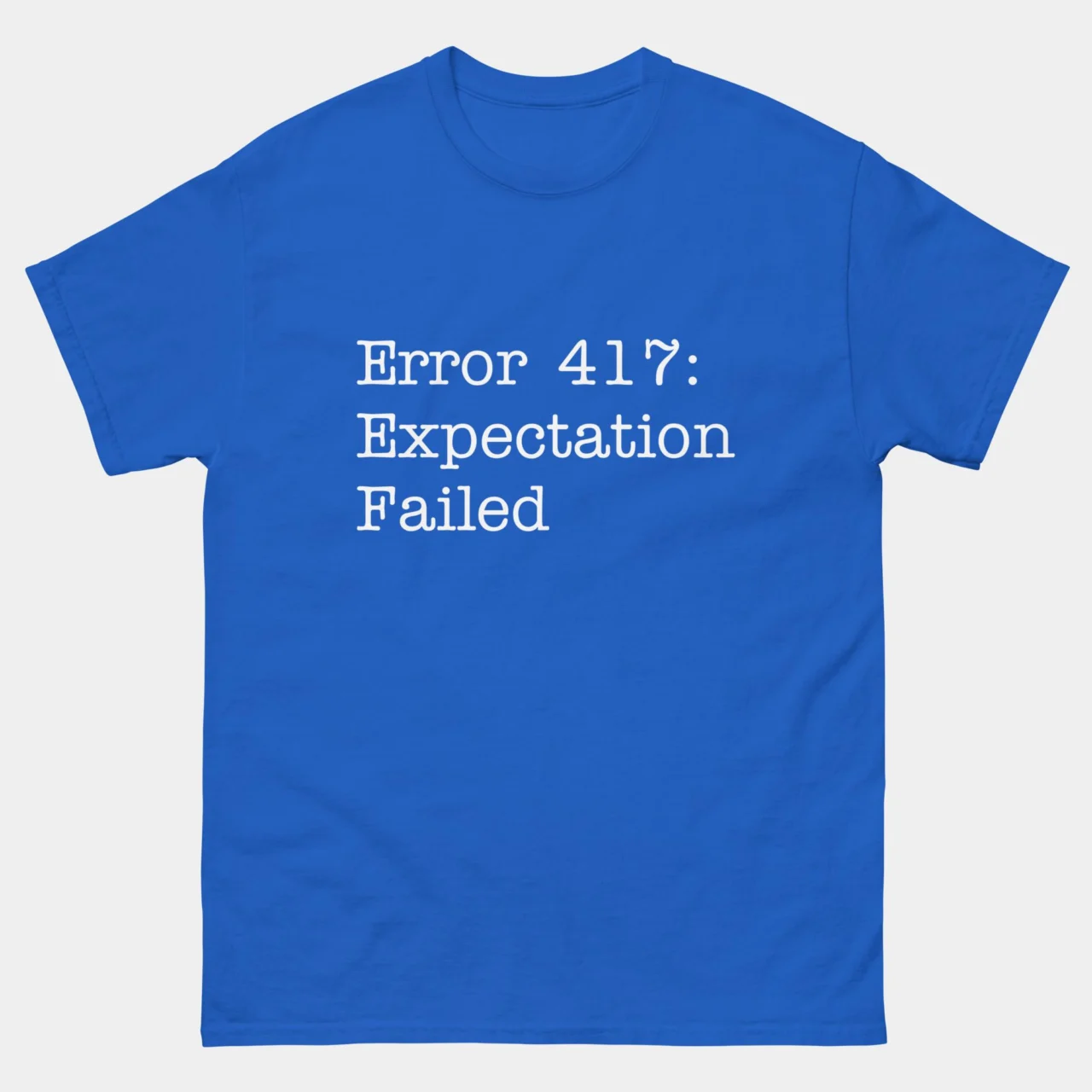 Error 417 Expectation Failed T-Shirt: A classic HTTP status code that every developer and IT professional can relate to. Whether it’s a failed deployment, a buggy update, or just another day in tech, this funny coding t-shirt sums it all up.