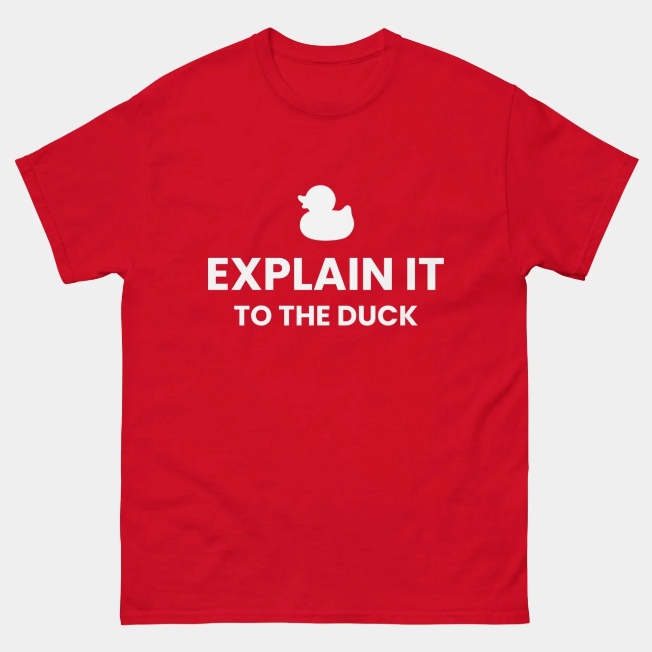 Explain It To The Duck T-Shirt – Funny Rubber Duck Debugging Shirt – Programmer Coder Developer Humor Tee – Debugging Help Gift – Classic Unisex Heavy Cotton T-Shirt by TechGeeksApparel: