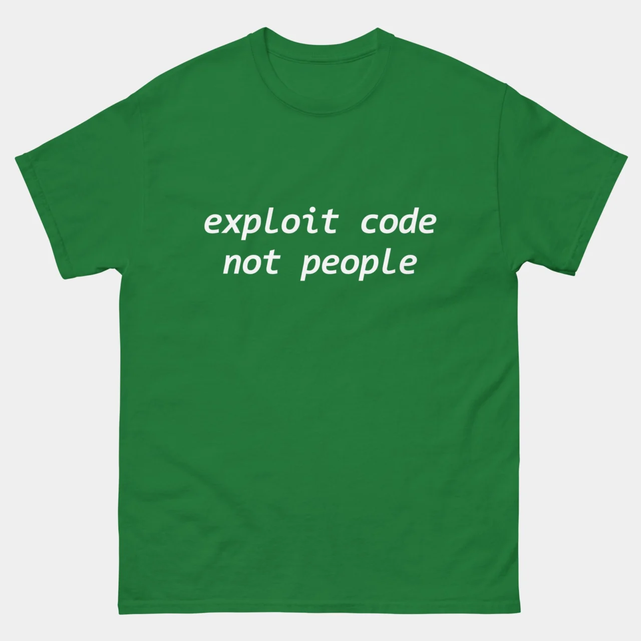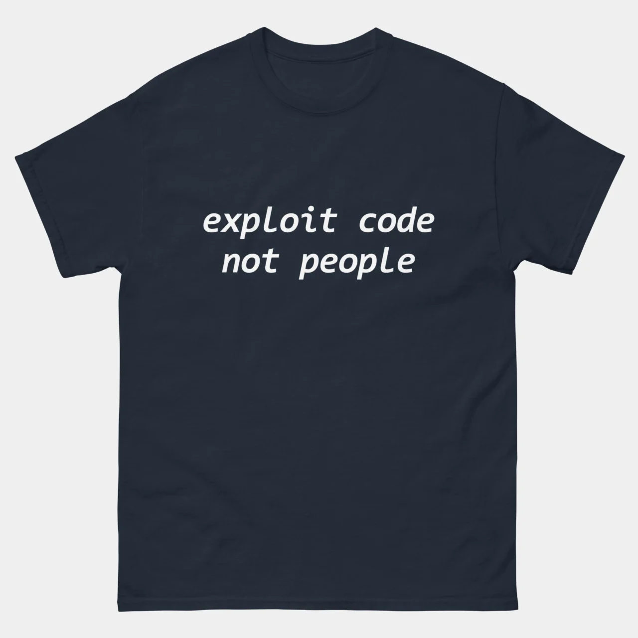 #ExploitCodeNotPeople #EthicalHackerTee #CybersecurityHumor #SecurityAnalystGift #ProgrammerEthics #RedTeamBlueTeam #PenetrationTester #CodeIsTheTarget #HackerPhilosophy #TechApparel