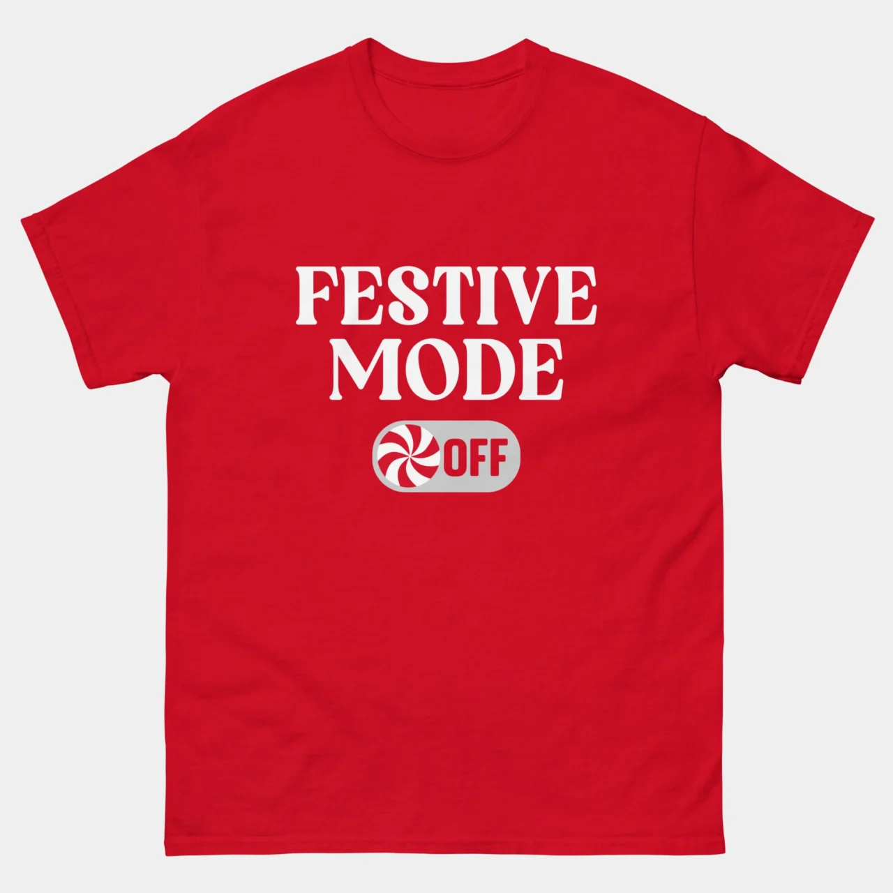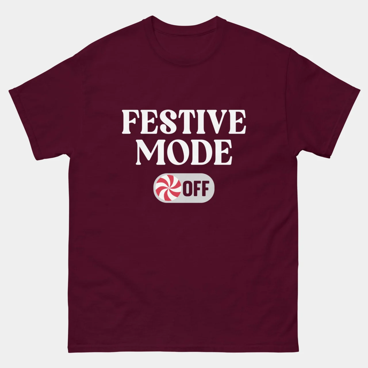 #FestiveModeOff #ProgrammerChristmas #TechWorkerGift #HolidaySarcasm #CoderBurnout #FunnyTshirt #SecretSantaTech #ChristmasApparel #CodeLife #TechFashion