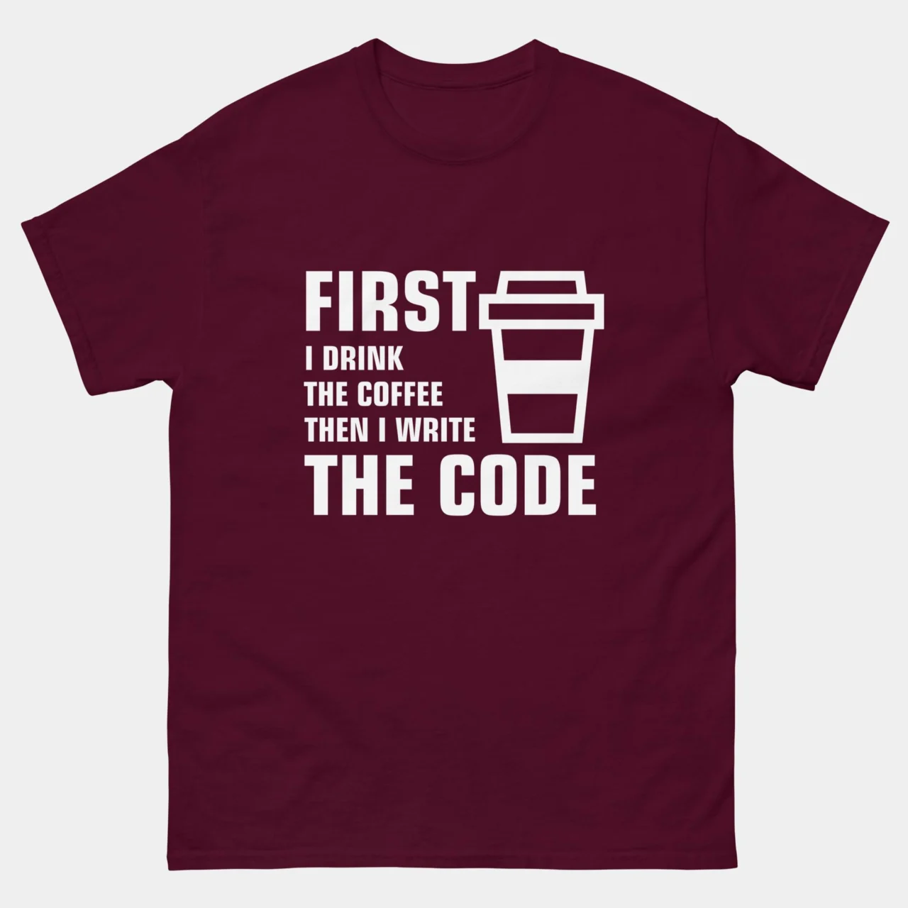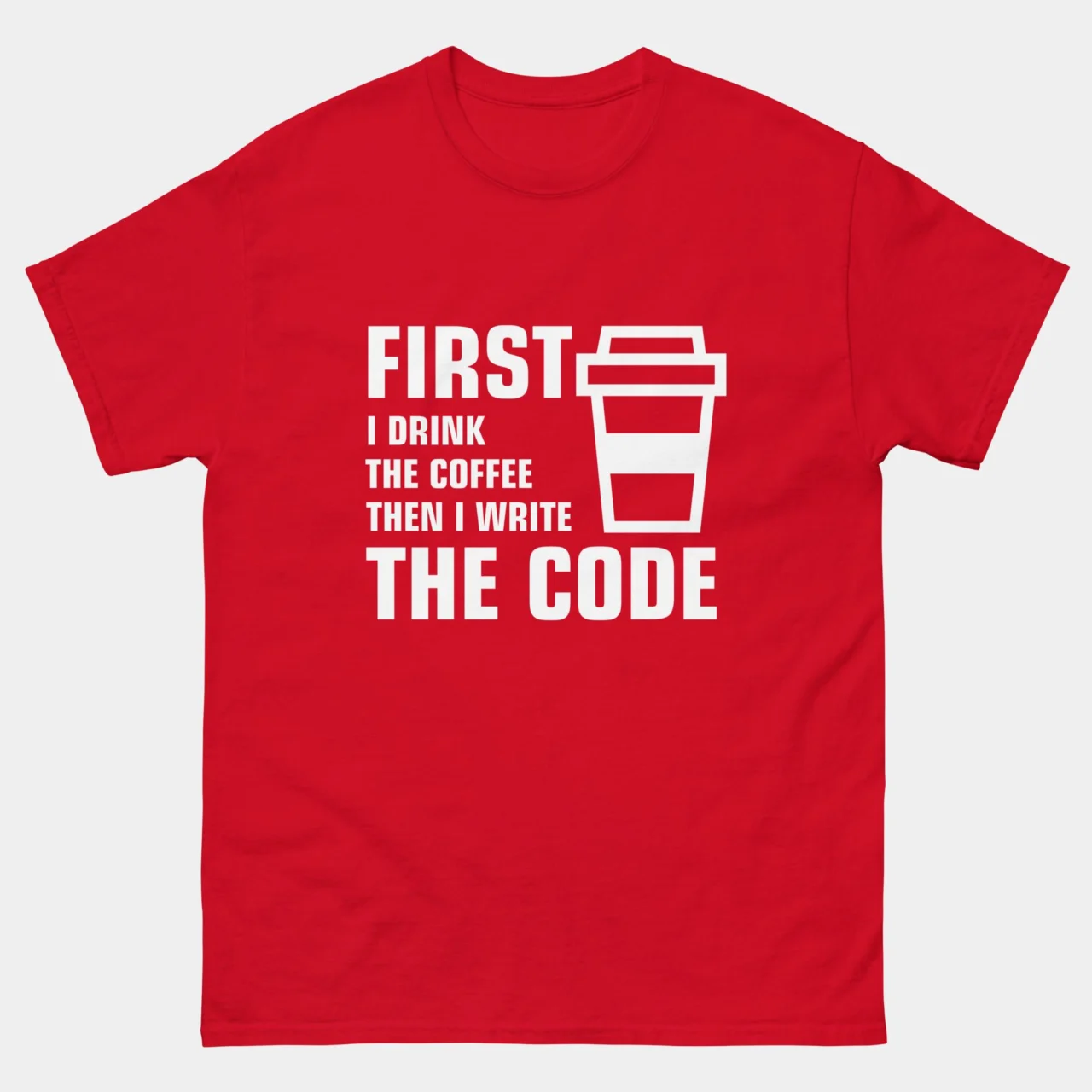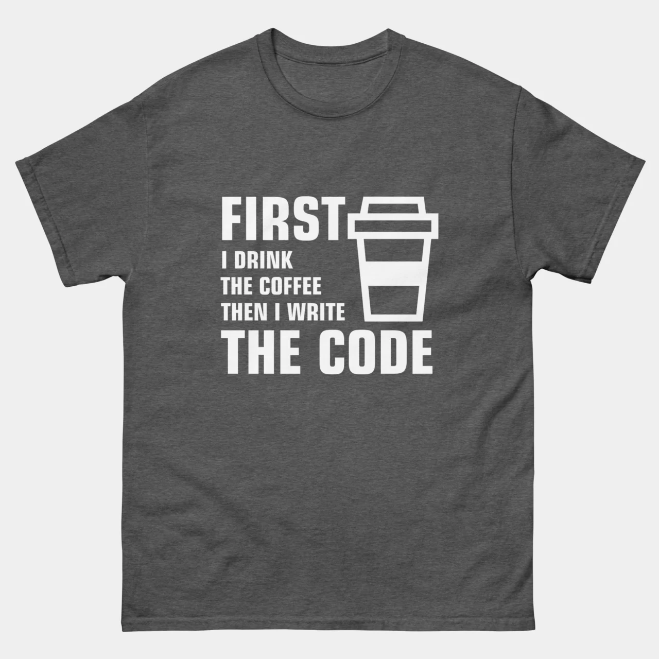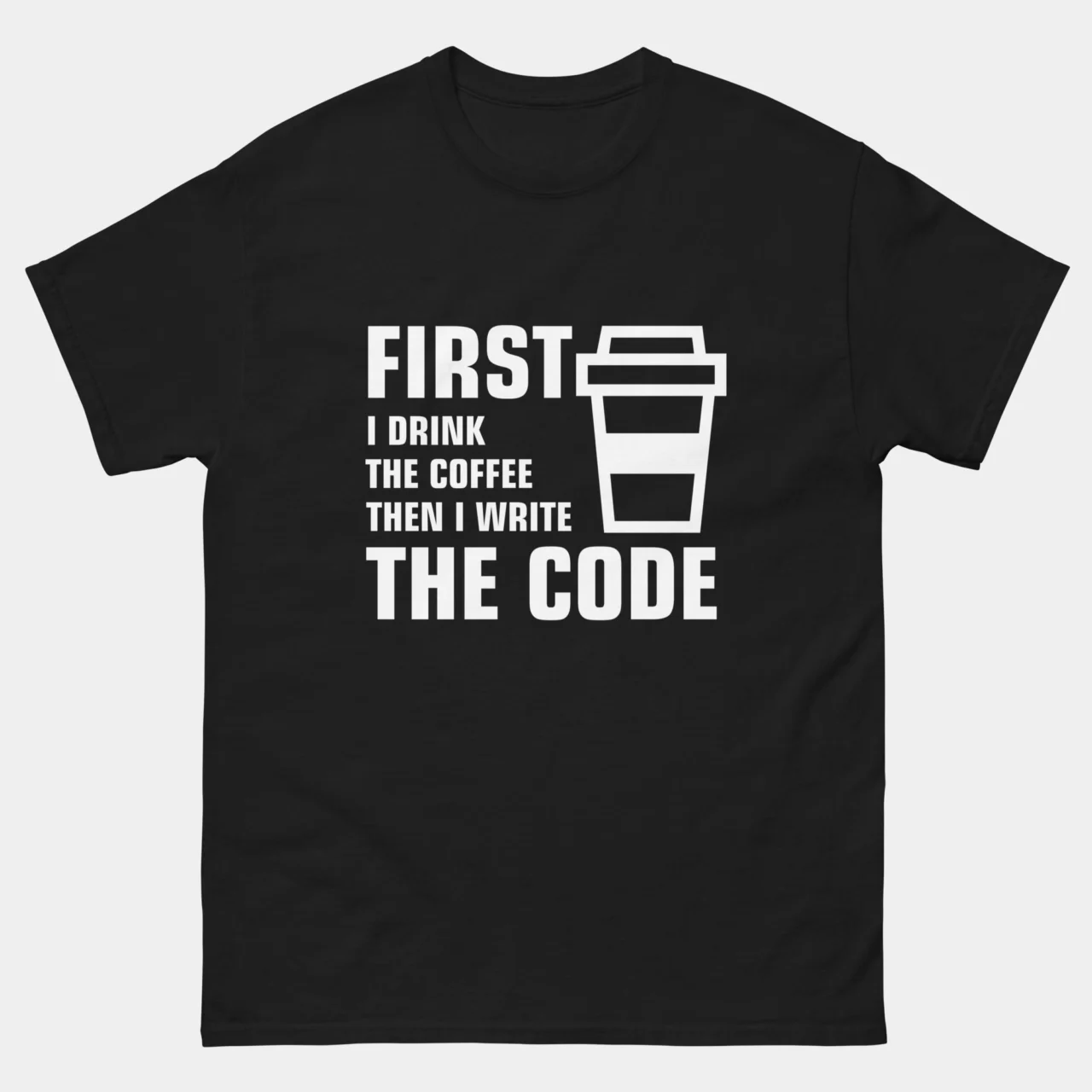 First I Drink The Coffee Then I Write The Code T-Shirt – Funny Programmer Shirt – Coding Coffee Lover Gift Tee – Classic Unisex Heavy Cotton T-Shirt by TechGeeksApparel:
