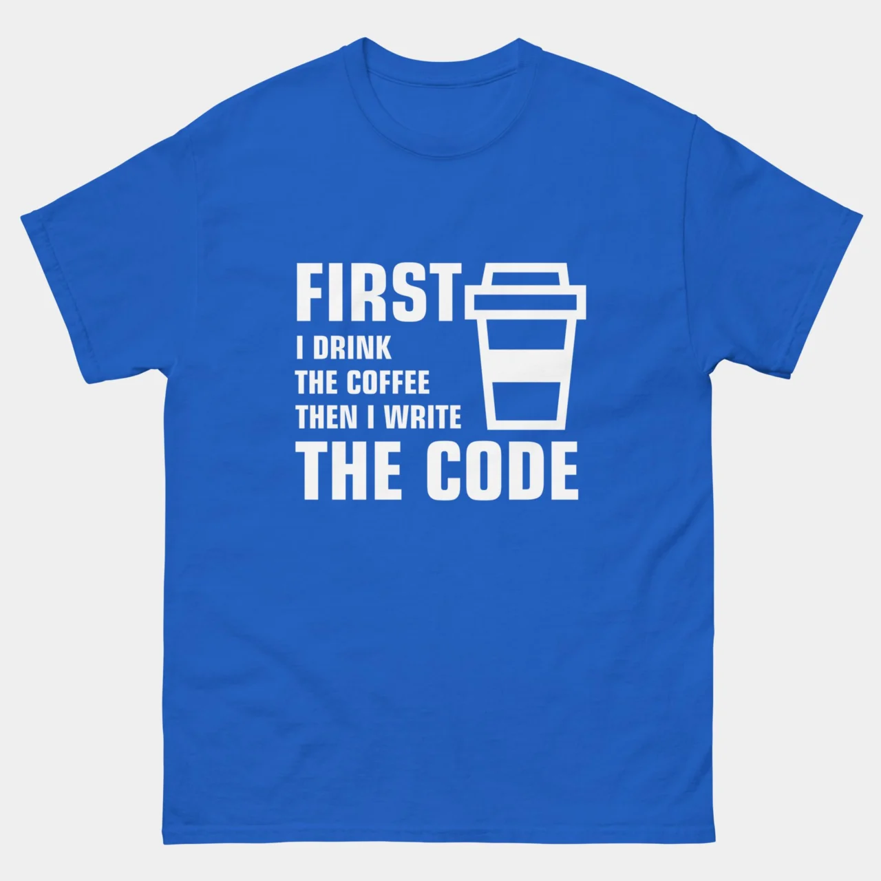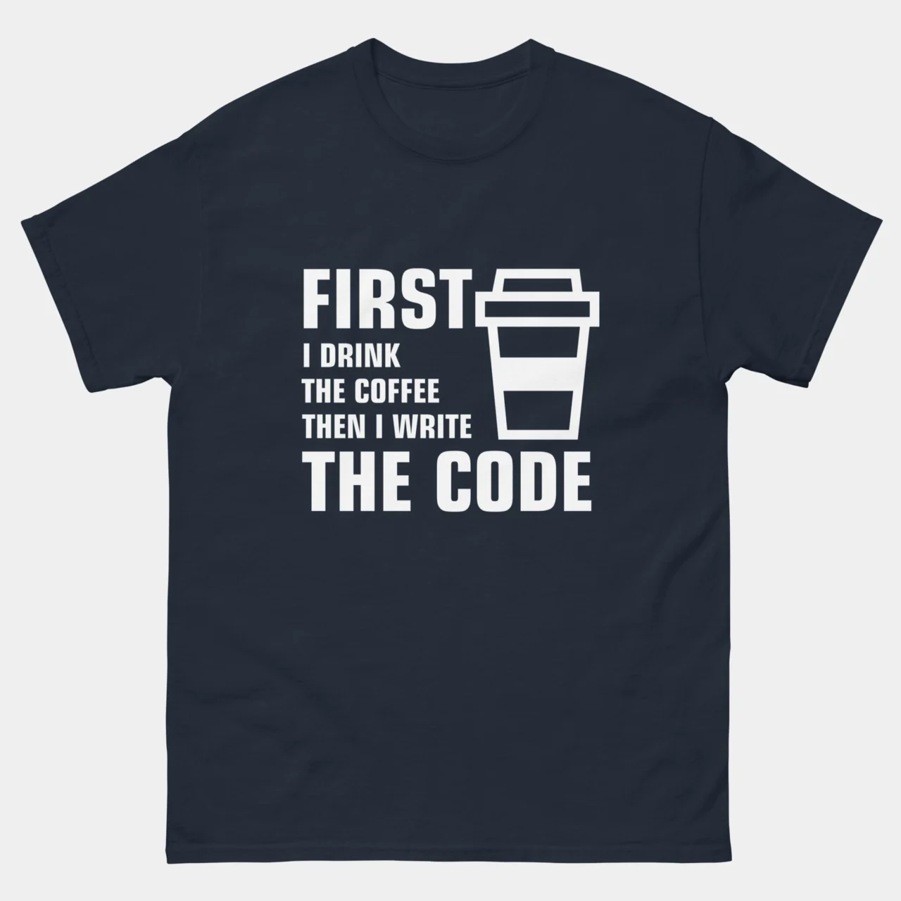First I Drink The Coffee Then I Write The Code T-Shirt – Because let’s be honest, caffeine is the real programming language. This tee is perfect for devs who don’t even touch the keyboard until their coffee kicks in.