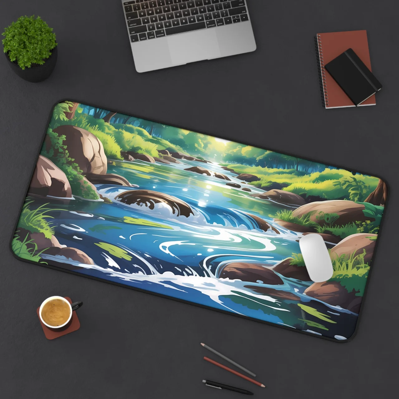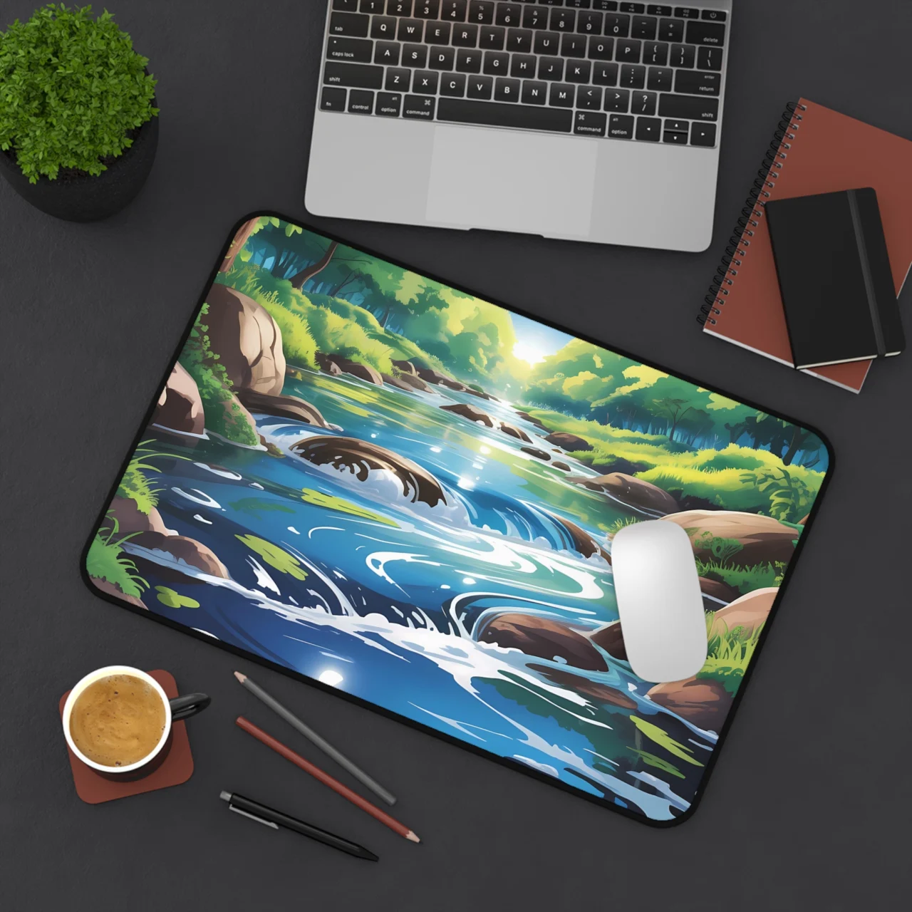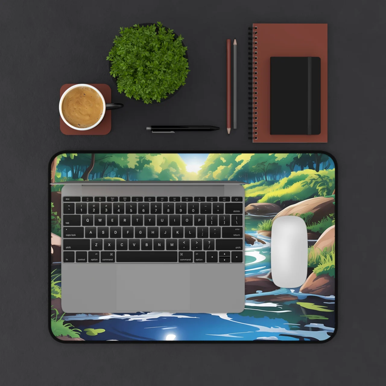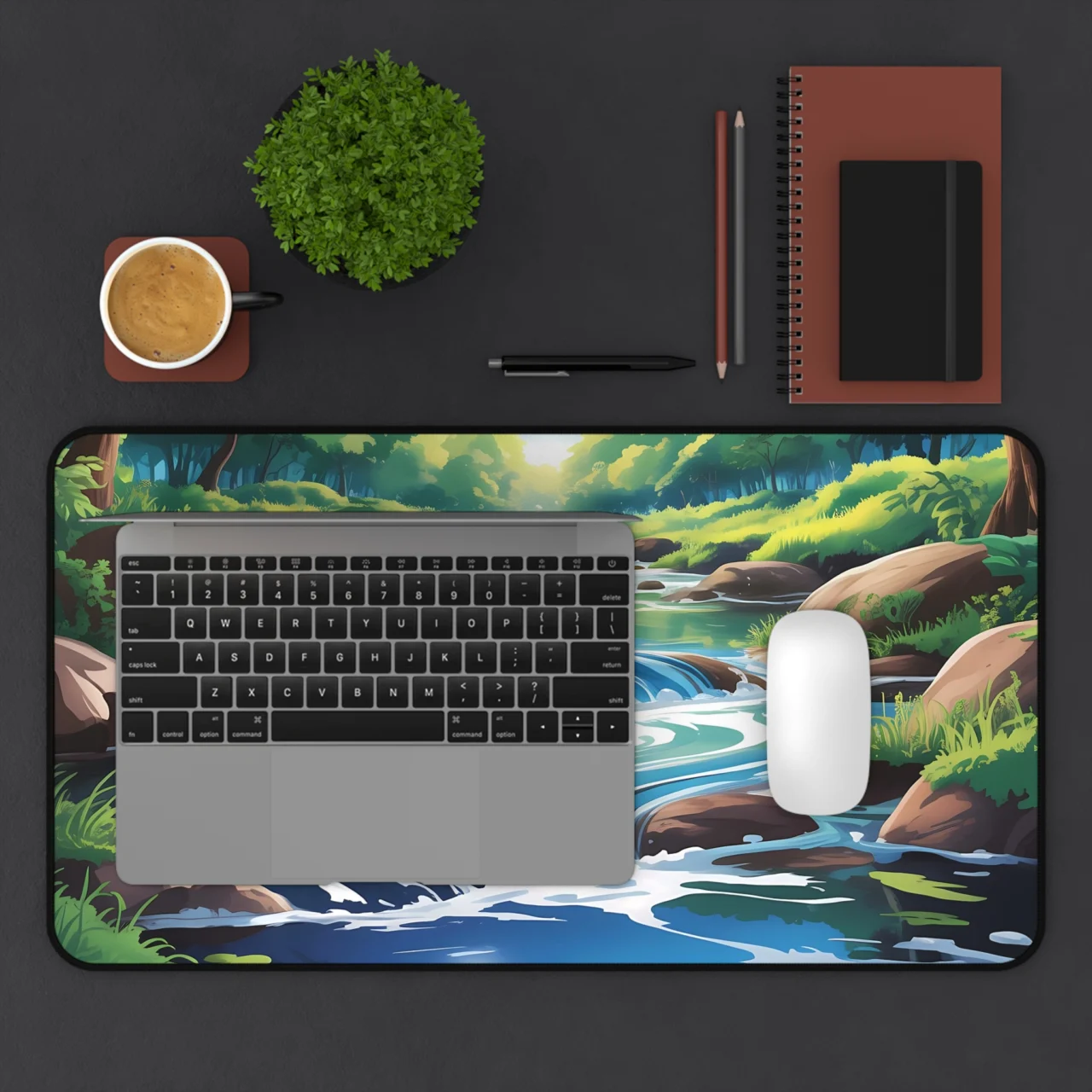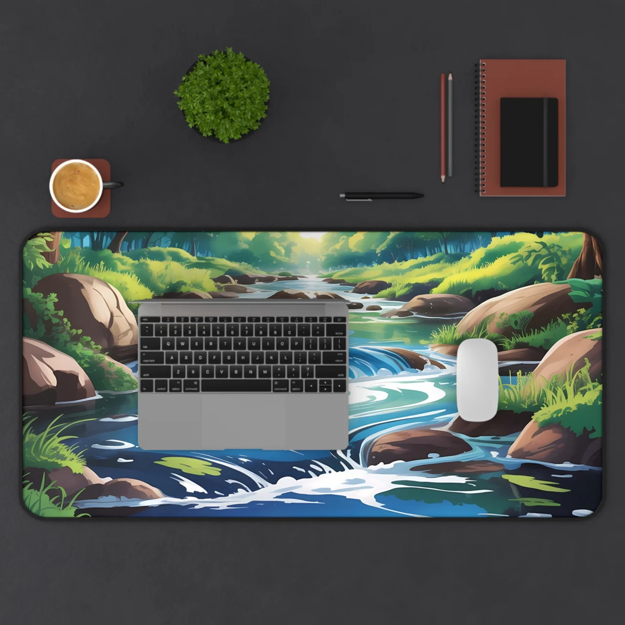 Forest River Desk Mat – Nature Stream Mouse Pad – Lush Green Aesthetic Decor