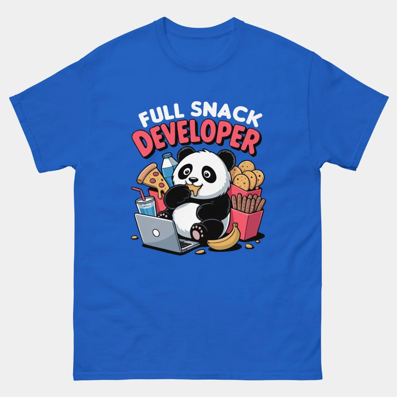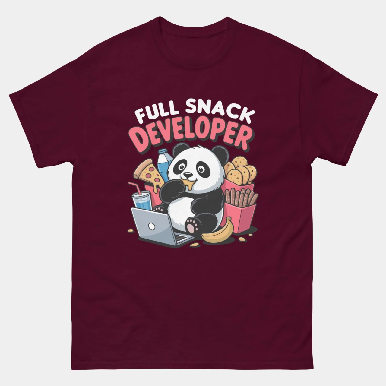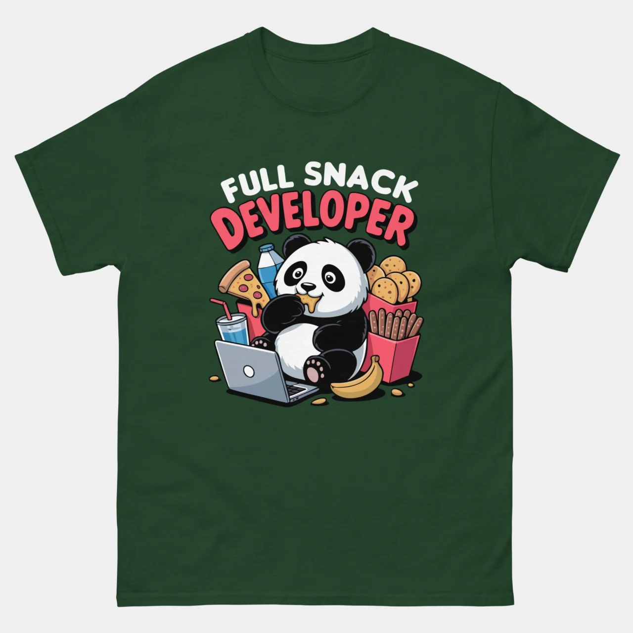 #FullSnackDeveloper #CodingPuns #PandaLife #ProgrammerHumor #DevLife #TechFashion #SoftwareEngineer #FunnyTshirts #WebDevelopment #SnackTime