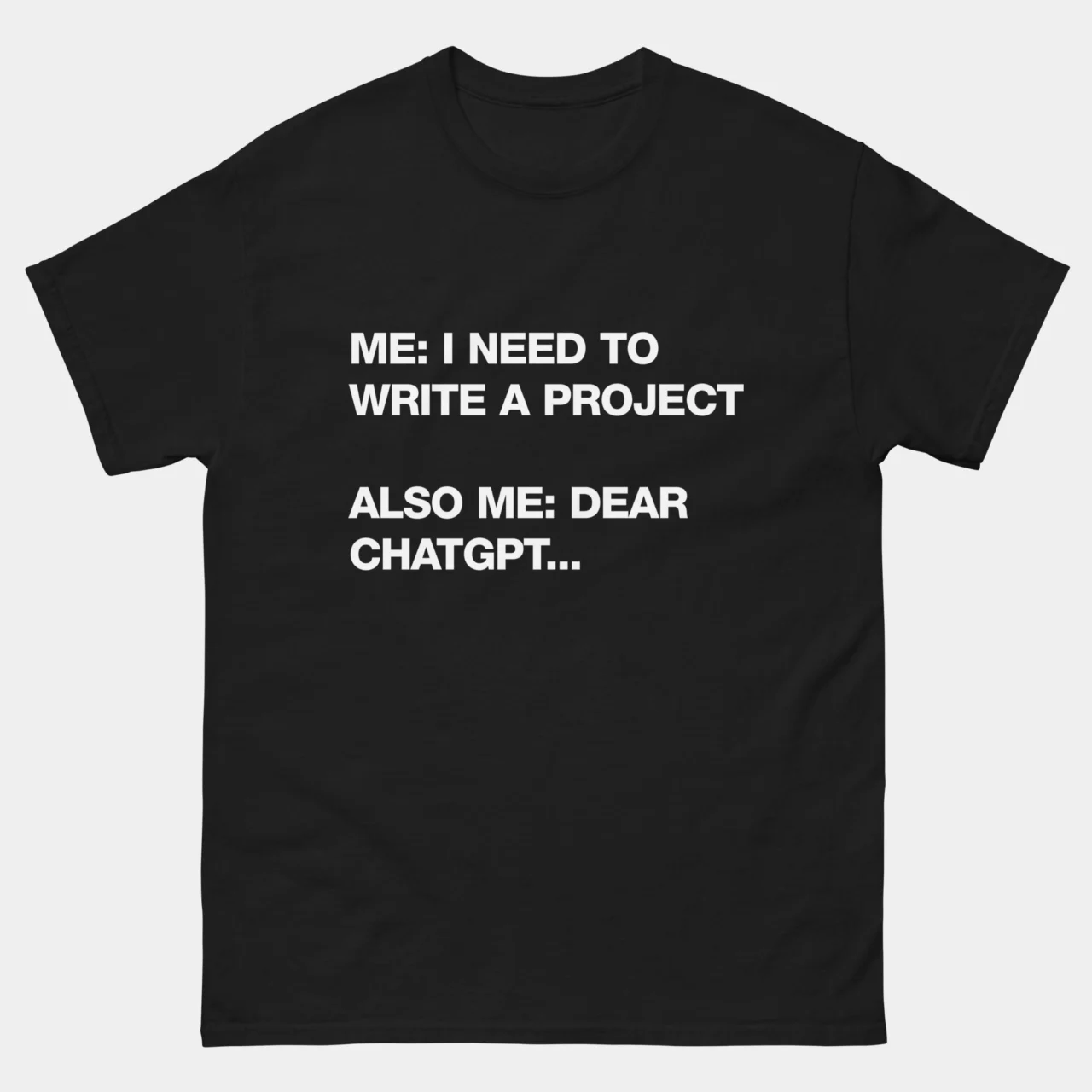 Funny AI Developer T-Shirt – I Need to Write a Project, Also Me: Dear ChatGPT Shirt – Software Engineer & Coding Humor – Machine Learning Geek Gift – Classic Unisex Heavy Cotton T-Shirt by TechGeeksApparel: