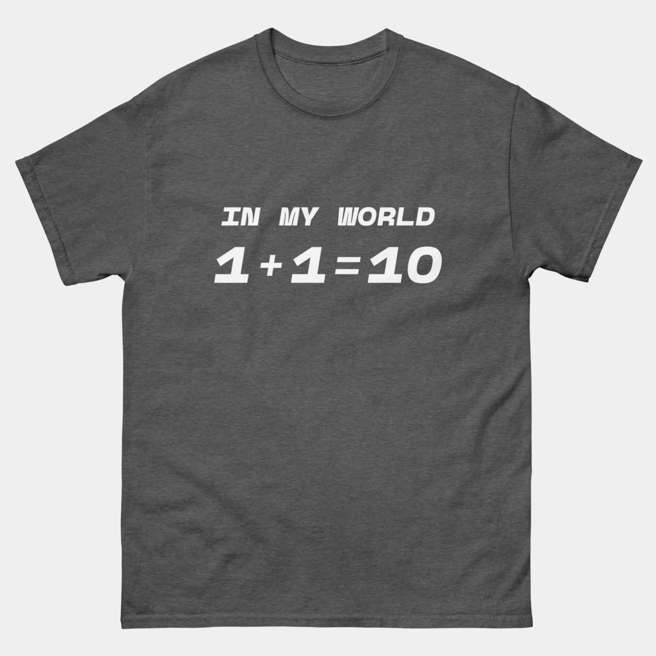 Funny Binary Code Shirt – In My World 1+1=10 T-Shirt – Programmer Math Humor Tee – Computer Science Geek Gift – Classic Unisex Heavy Cotton T-Shirt by TechGeeksApparel: