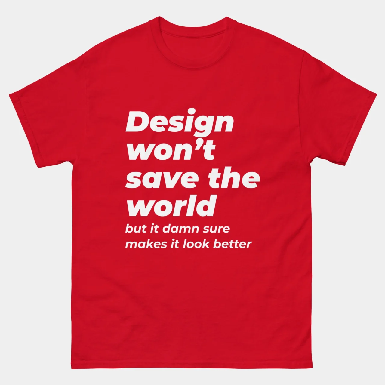 Funny Graphic Designer T-Shirt – Design Won’t Save the World But It Makes It Look Better Shirt – Creative Artist Tee – Classic Unisex Heavy Cotton T-Shirt by TechGeeksApparel:
