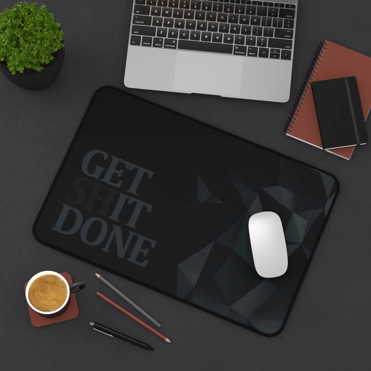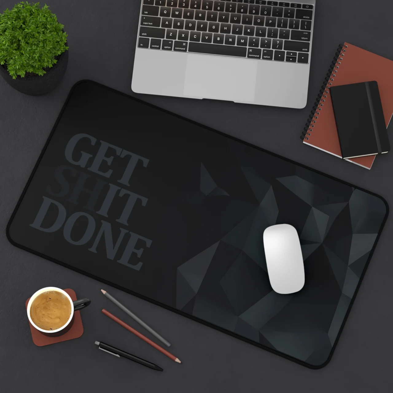 Your desk should reflect your ambition. This Get Shit Done Desk Mat combines a sleek, modern polygonal art style with a blunt, effective reminder to stay on task. It’s the perfect foundation for a high-performance workstation where results matter most.