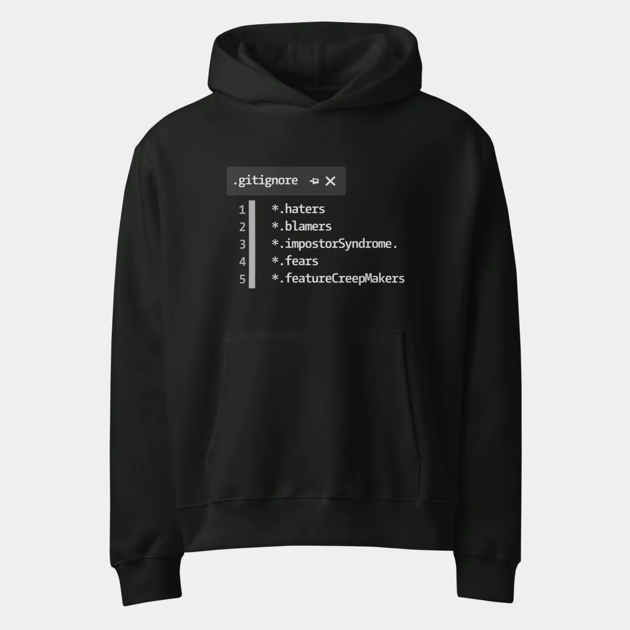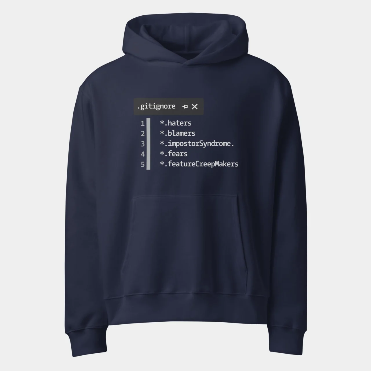 .gitignore Oversized Hoodie – Funny Programmer Gift – Tech Humor Pullover – Filter Haters Imposter Syndrome Fears – Developer Coding Life Apparel