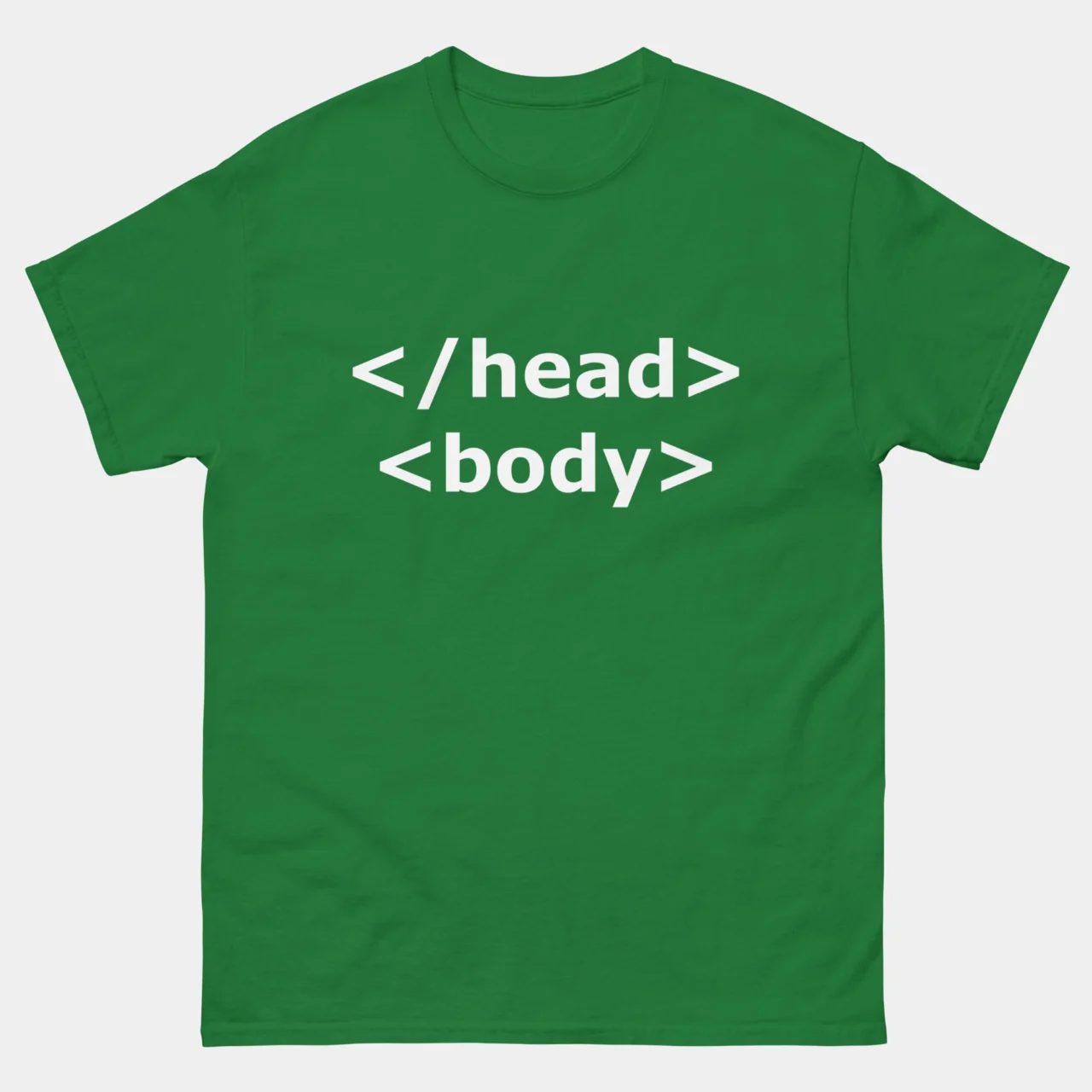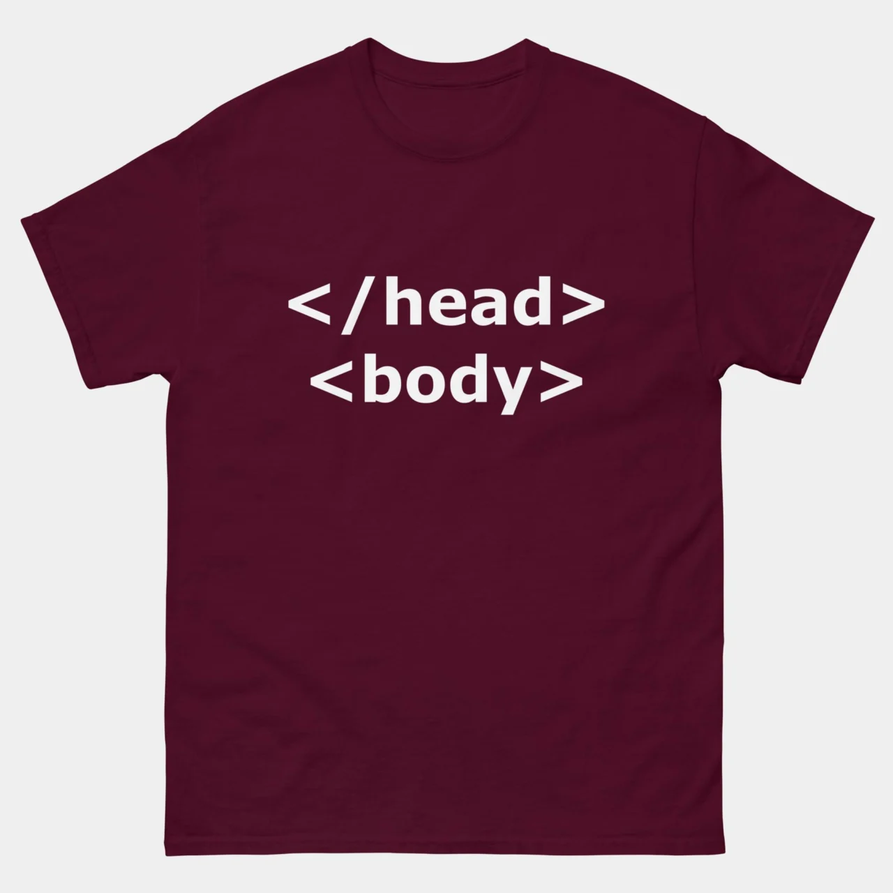 Head Body HTML Tags T-Shirt – Funny Web Developer Shirt – HTML Programmer Tee – Frontend Coding Geek Humor – Classic Unisex Heavy Cotton T-Shirt by TechGeeksApparel:
