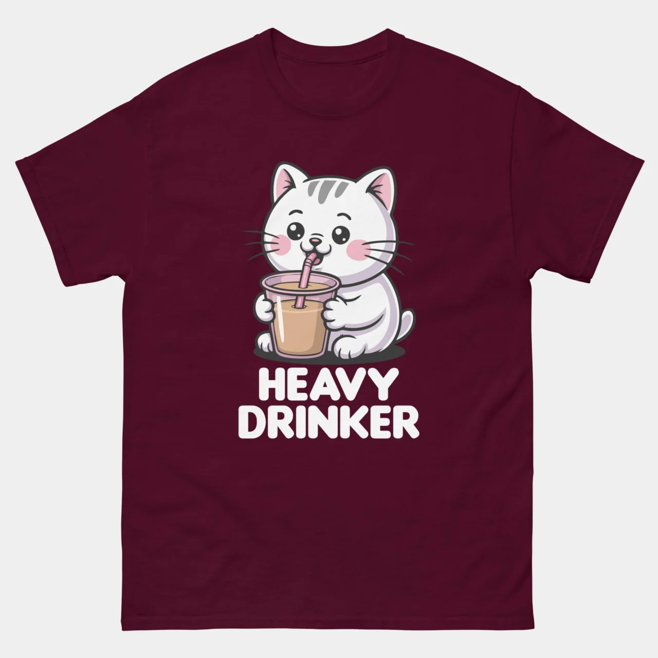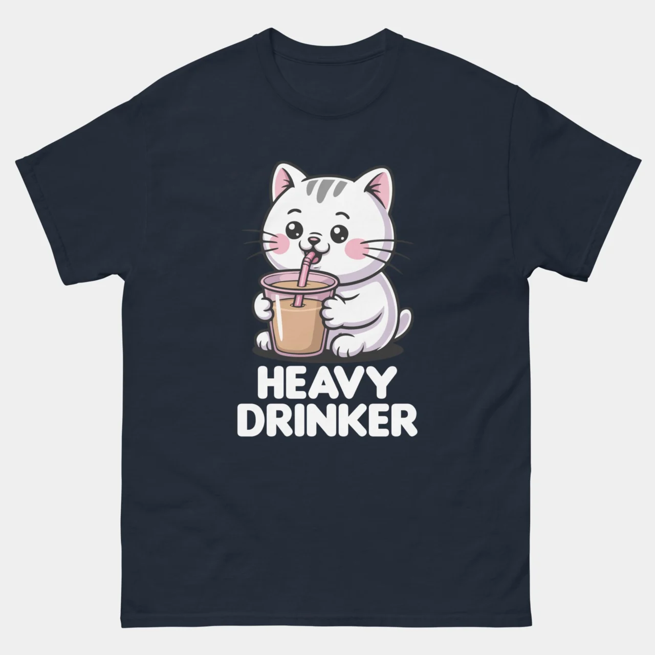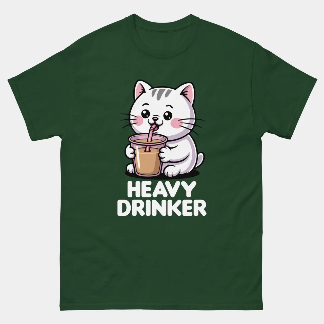 #HeavyDrinker #KawaiiCat #IcedCoffeeLover #BobaTea #CuteFashion #CatPuns #AestheticTee #WholesomeMemes #CoffeeAddict #FunnyTshirts