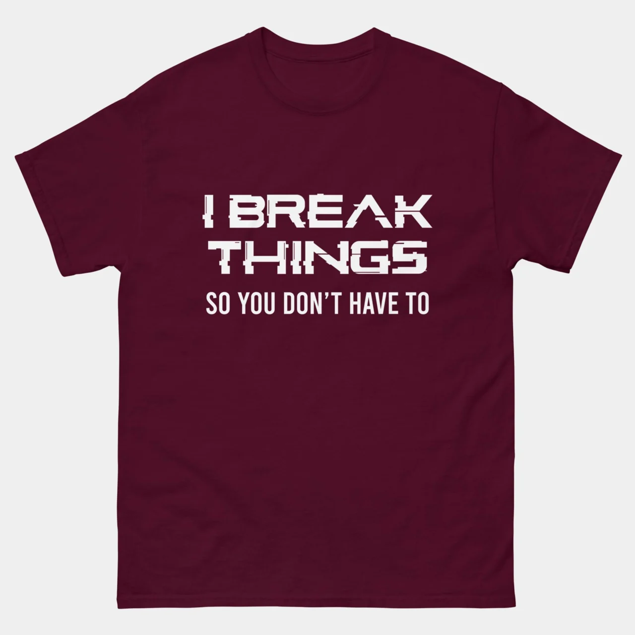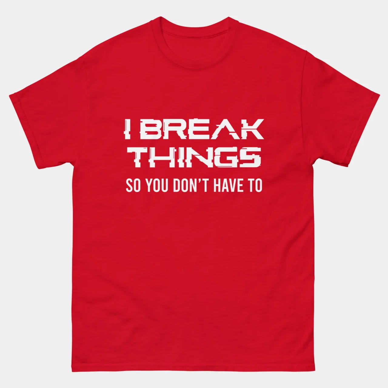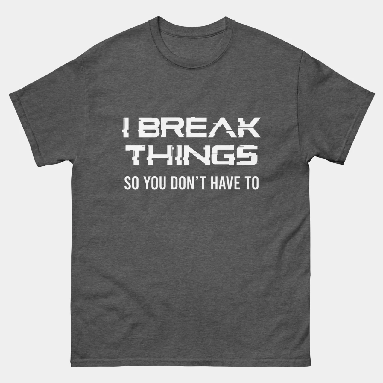 I Break Things So You Dont Have To T-Shirt – Funny QA Engineer Shirt – Software Testing Joke – Debugging Humor – IT Professional Gift – Classic Unisex Heavy Cotton T-Shirt by TechGeeksApparel: