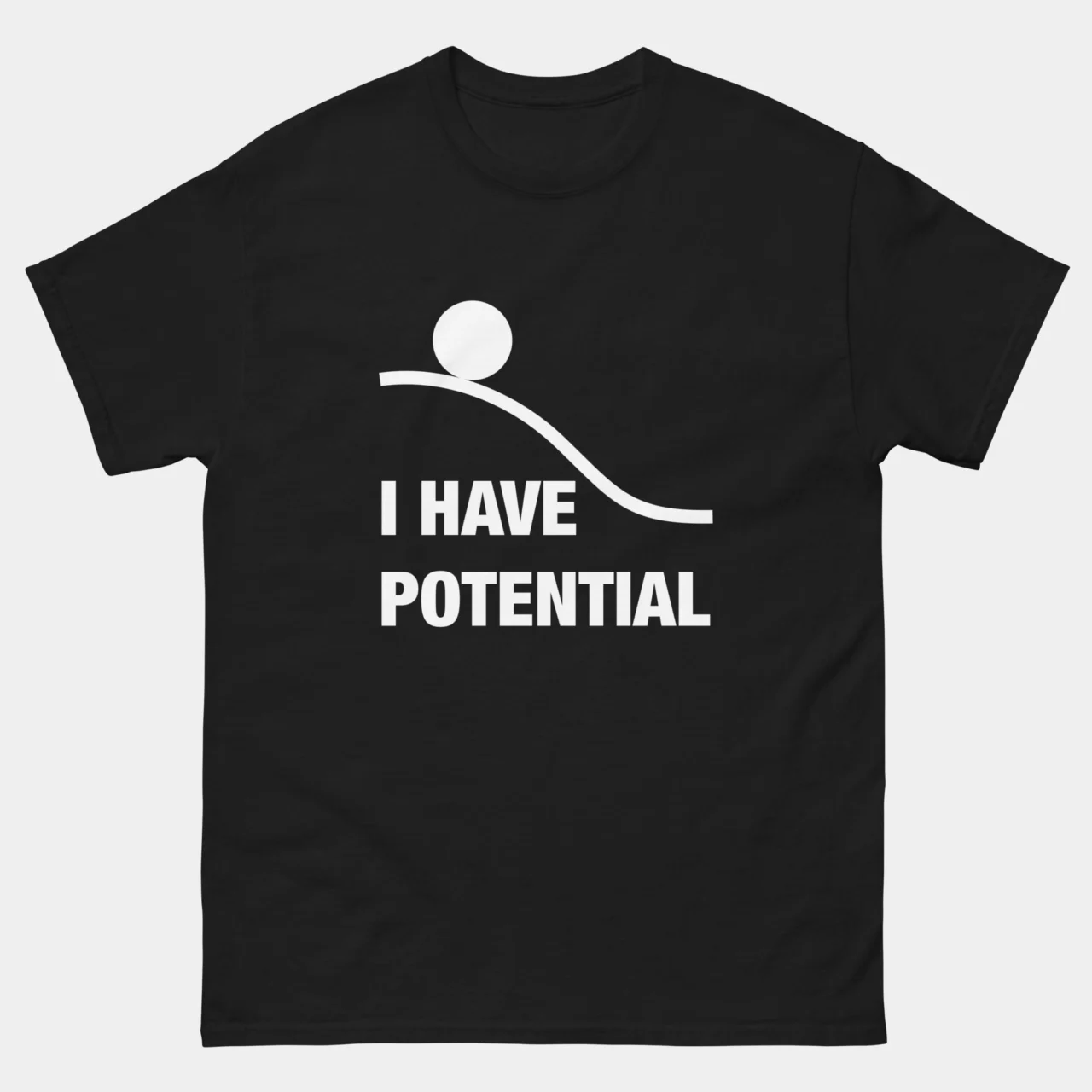 I Have Potential T-Shirt – Funny Physics Energy Pun – Science Teacher Gift – STEM Nerd Apparel – Engineering Humor Tee – Classic Unisex Heavy Cotton T-Shirt by Tech Geeks Apparel: