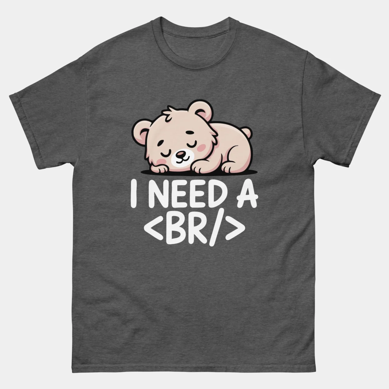 For when the sprint is too long and the coffee is too weak. This heather dark gray I Need A br Funny Web Developer T-Shirt features a perfect blend of technical wit and adorable illustration:
