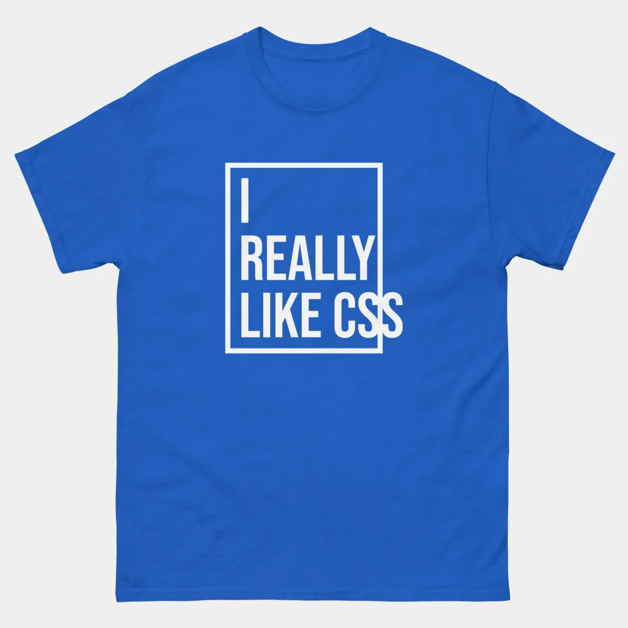 I Really Like CSS T-Shirt! This shirt is designed for sarcastic web developers and programmers who have a special fondness for CSS (Cascading Style Sheets). With a humorous and straightforward design, it features the text “I Really Like CSS,” showcasing your enthusiasm for the styling language that brings websites to life.