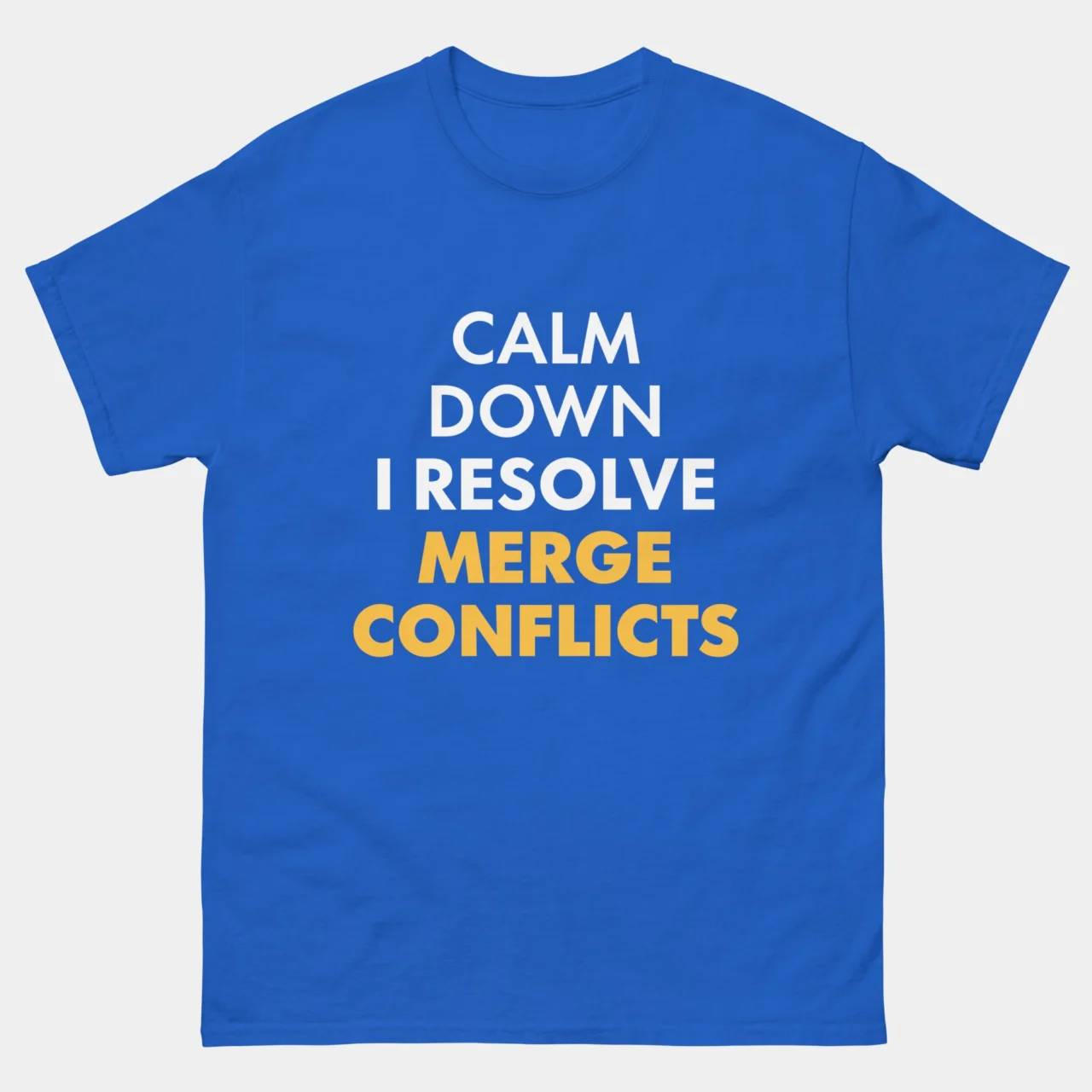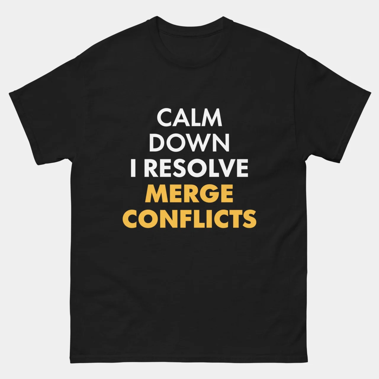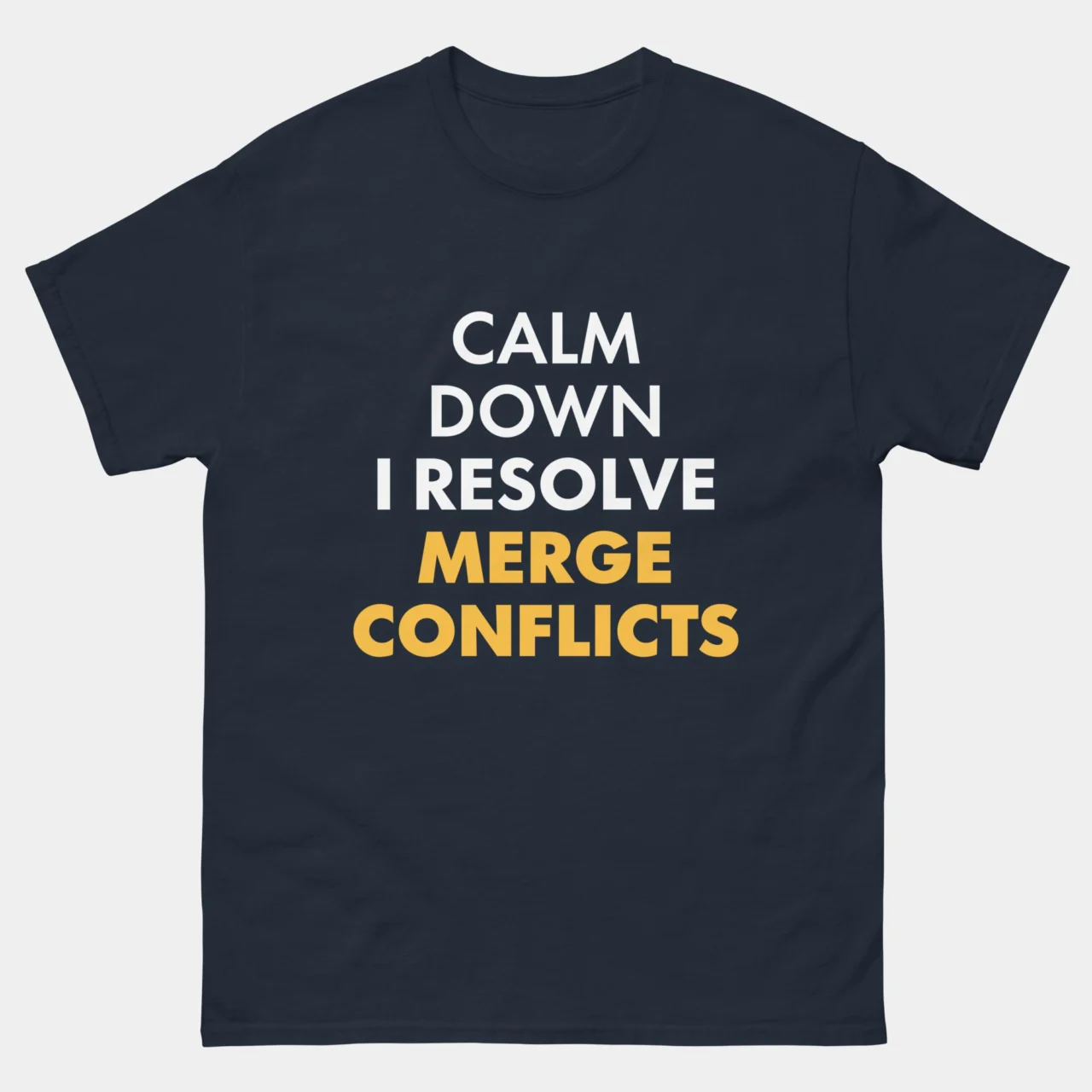 This version brings a grungy, bold graphic twist to the Git conflict resolution life. It’s a badge of honor for coders who bring order to chaos – and look good doing it.