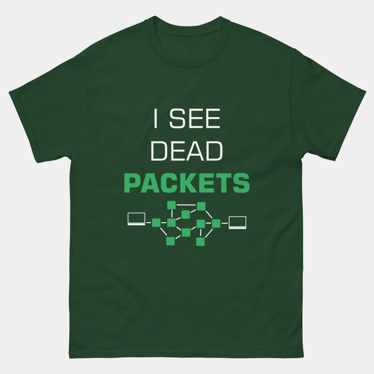#ISeeDeadPackets #NetworkingHumor #FunnyTechShirt #ITGeek #NetworkEngineer #SysAdminLife