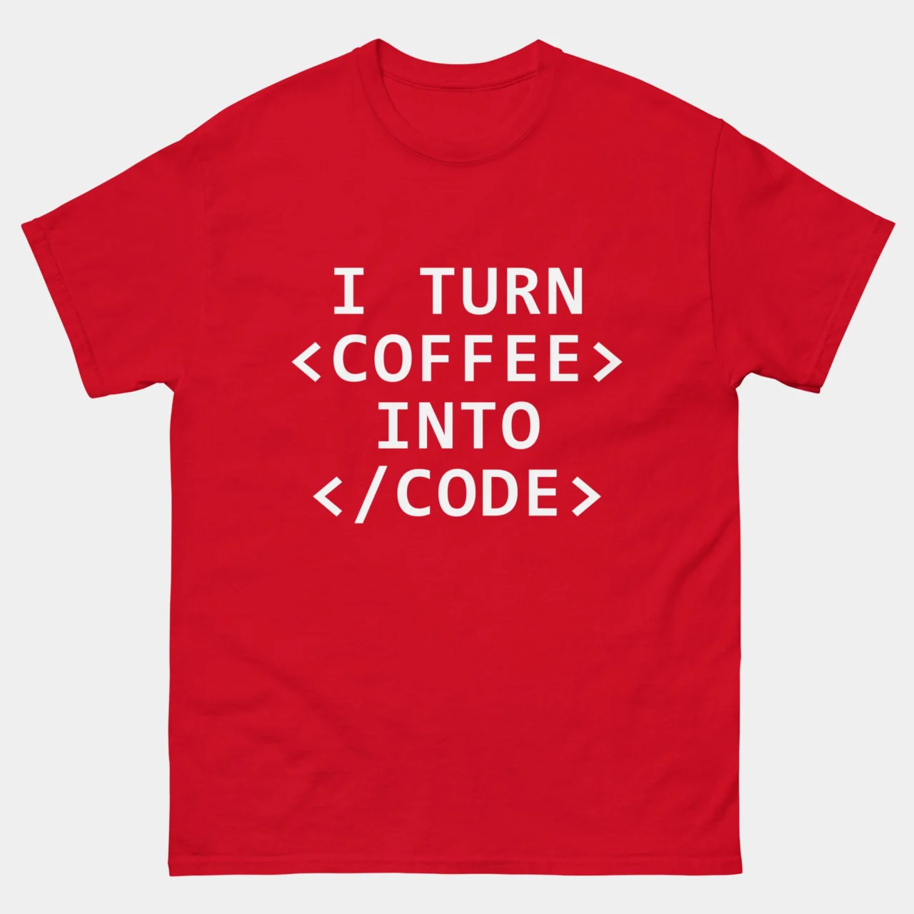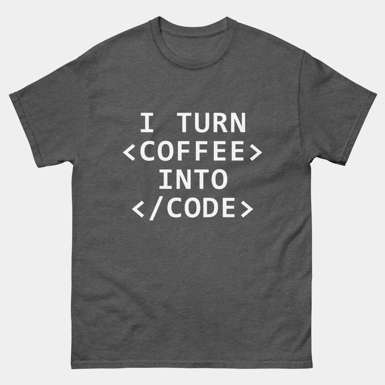 I Turn Coffee Into Code T-Shirt – Funny Programmer Shirt – Coding with Coffee Tee – Developer Java Caffeine Gift – Classic Unisex Heavy Cotton T-Shirt by TechGeeksApparel: