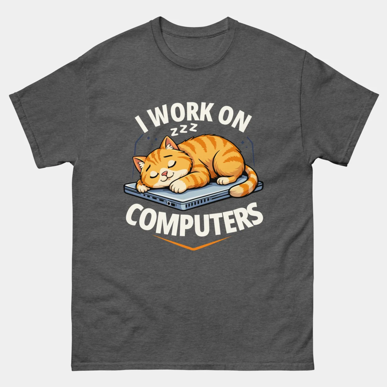 I Work On Computers Cat T-Shirt, Funny Ginger Cat Laptop Graphic Tee, Sarcastic Remote Work Tech Humor Shirt, Gift for IT Professionals & Software Devs, Coding Cat Graphic Top, Programmer & Gamer Kitty Apparel
