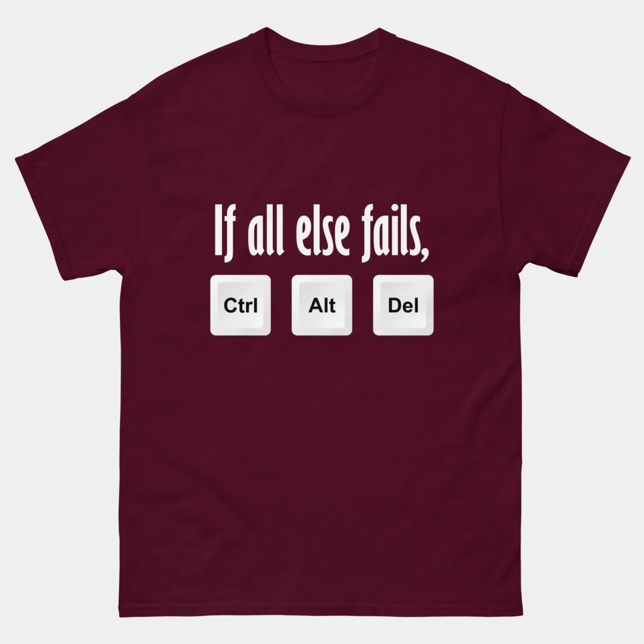 If All Else Fails Ctrl Alt Delete T-Shirt – Funny IT Support Shirt – Computer Geek Humor – SysAdmin Joke Tee – Tech Professional Gift – Classic Unisex Heavy Cotton T-Shirt by TechGeeksApparel: