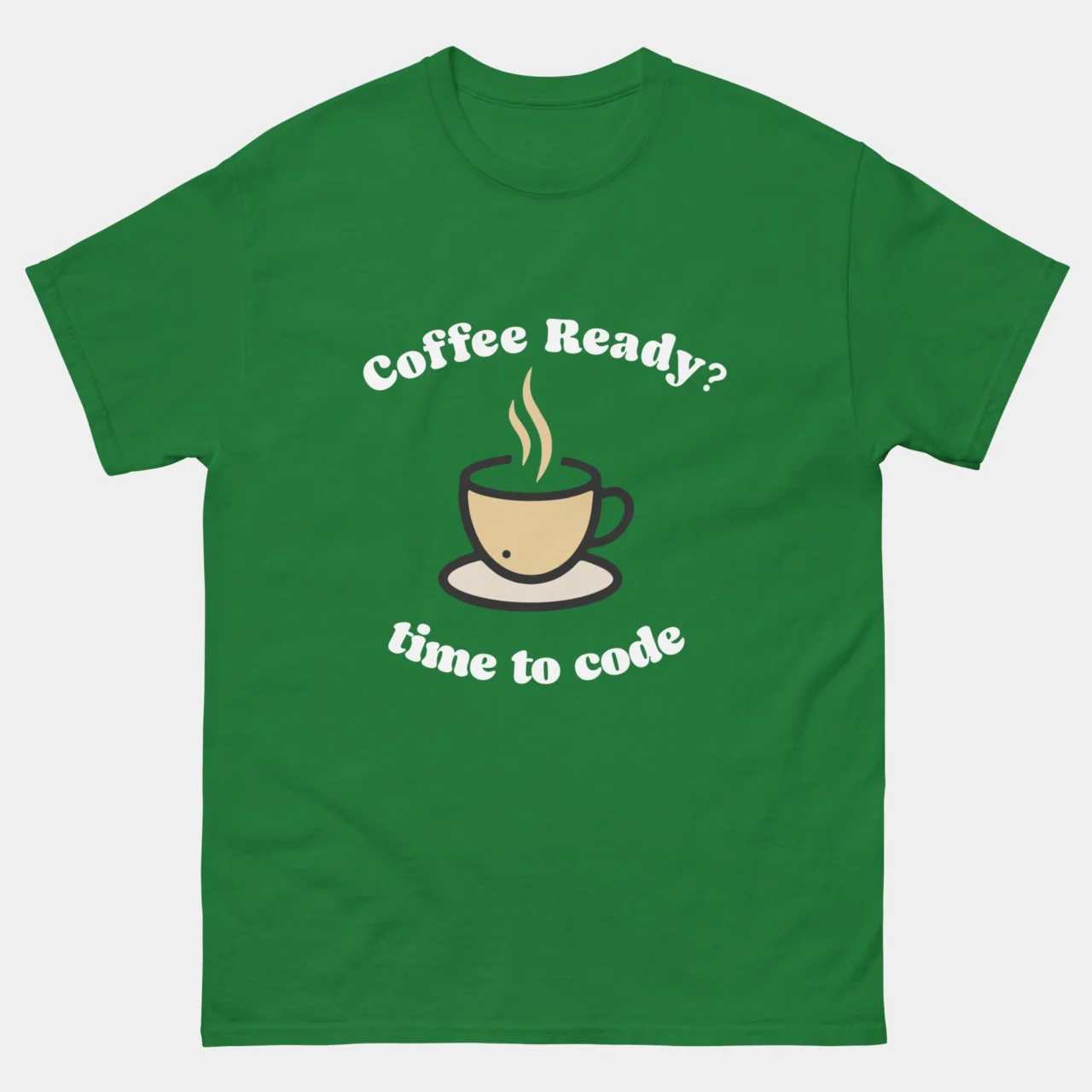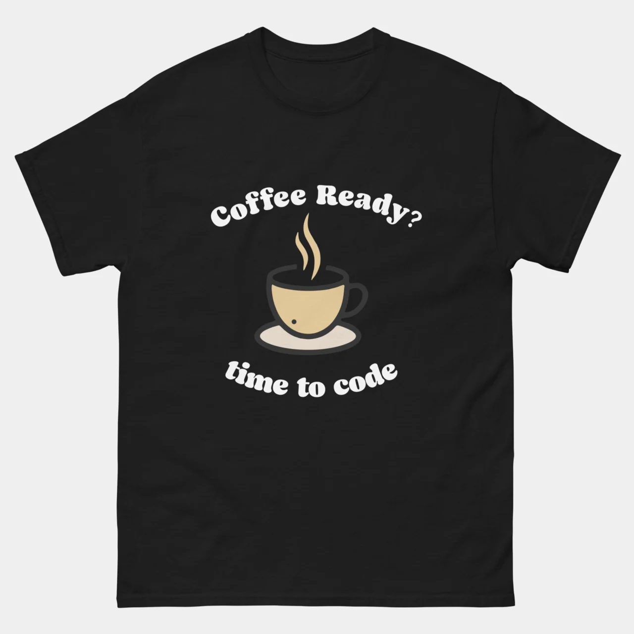 This tee is the daily motto for devs who start their mornings (or nights) with caffeine and clean code. A fun and energetic gift for any programmer who thinks better with a full mug.